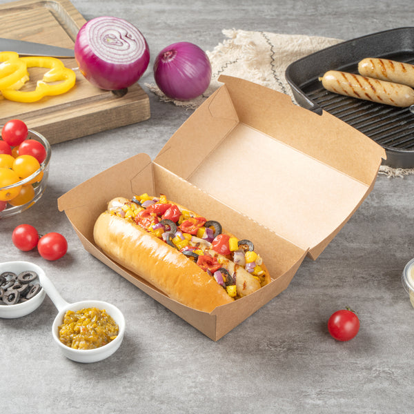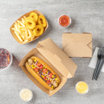 RECTANGLE KRAFT PAPER HOT DOG / SANDWICH CLAMSHELL CONTAINER