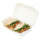 These paper clamshell to go containers boast a tab lock closure, ensuring your food stays fresh and well-protected. Reliable and fast-locking design.