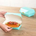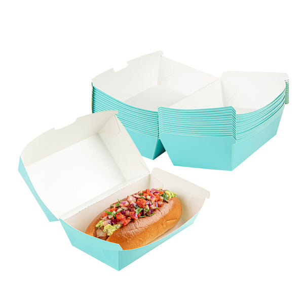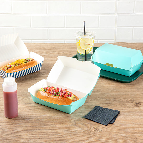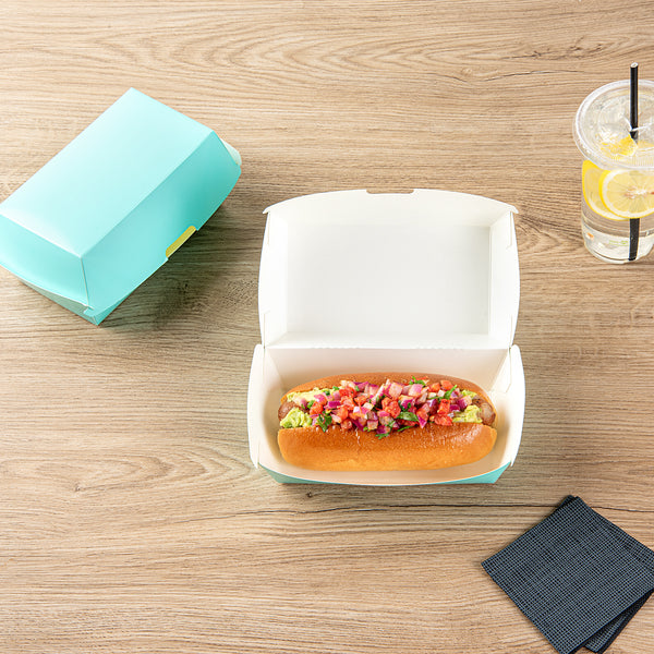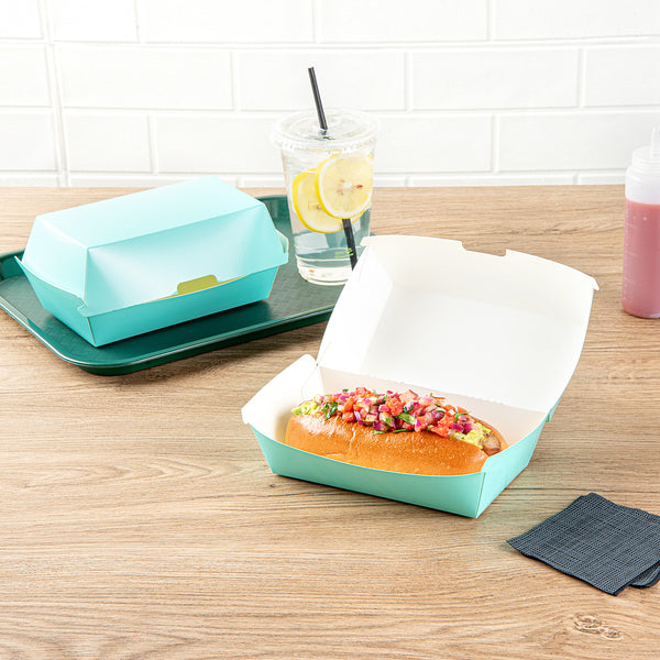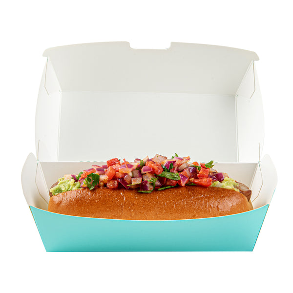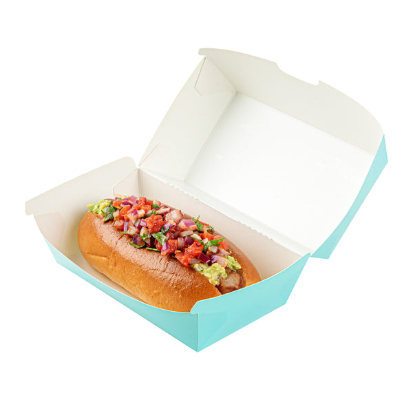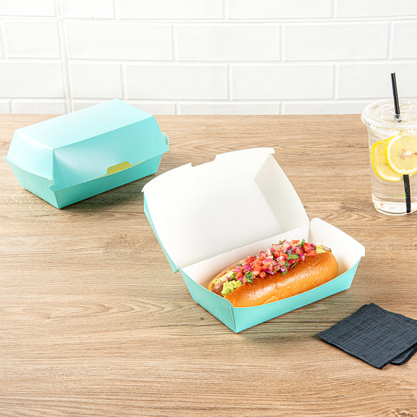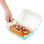 RECTANGLE TURQUOISE PAPER HOT DOG / SANDWICH CLAMSHELL CONTAINER