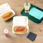 The greaseproof design of these paper hot dog containers retains any mess in your take out food experience. Say goodbye to soggy containers and oily leaks.