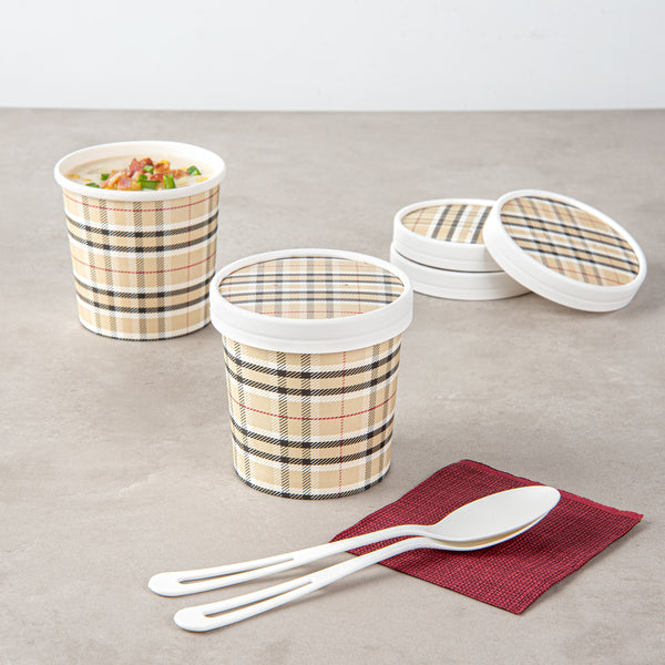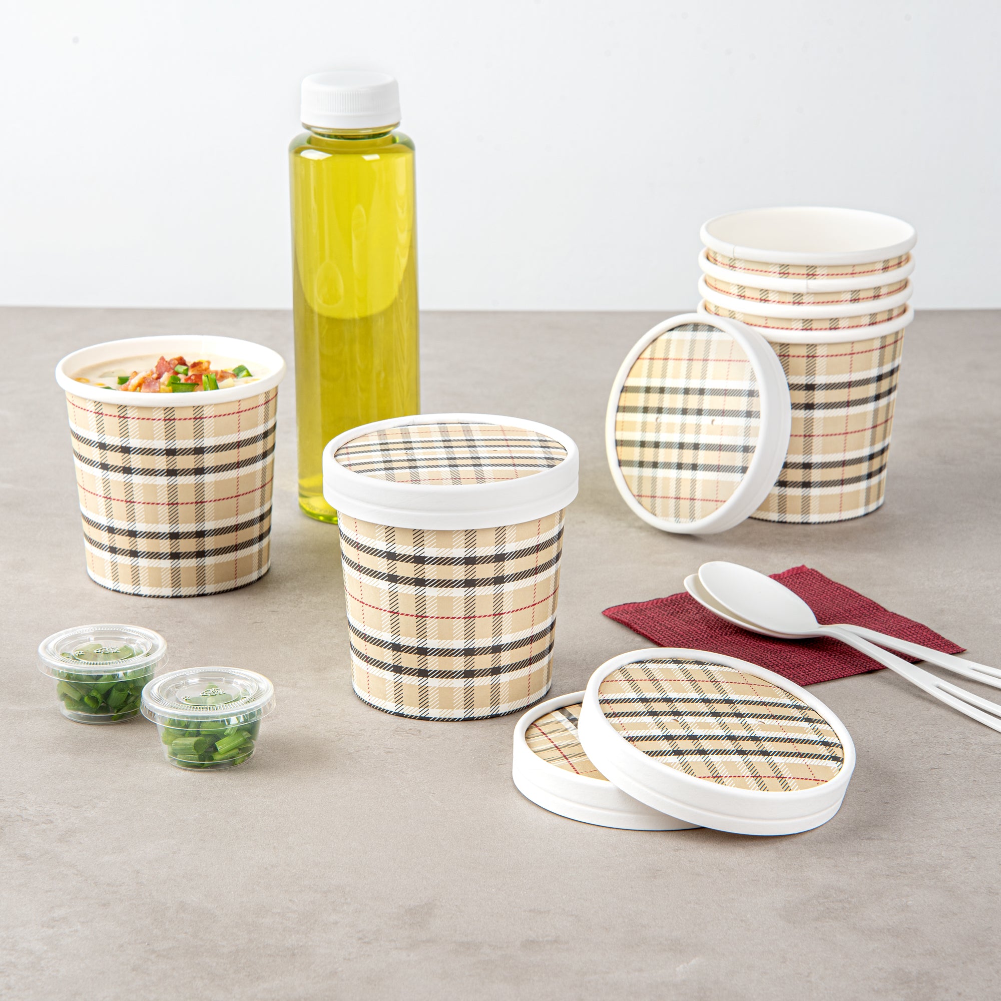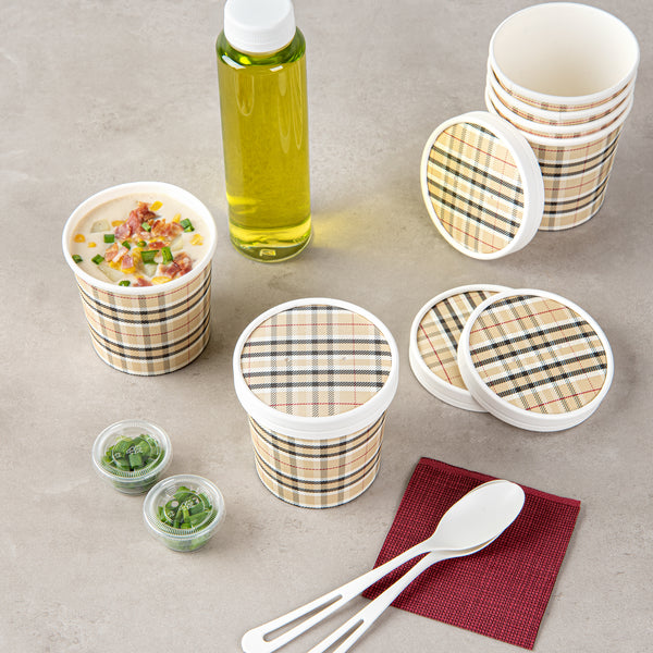 ROUND PLAID PAPER SOUP CONTAINER LID - FITS 12 OZ