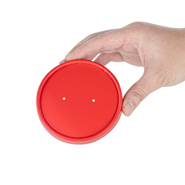ROUND RED PAPER SOUP CONTAINER LID - FITS 12 OZ