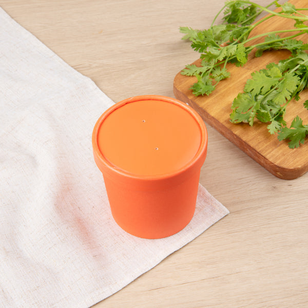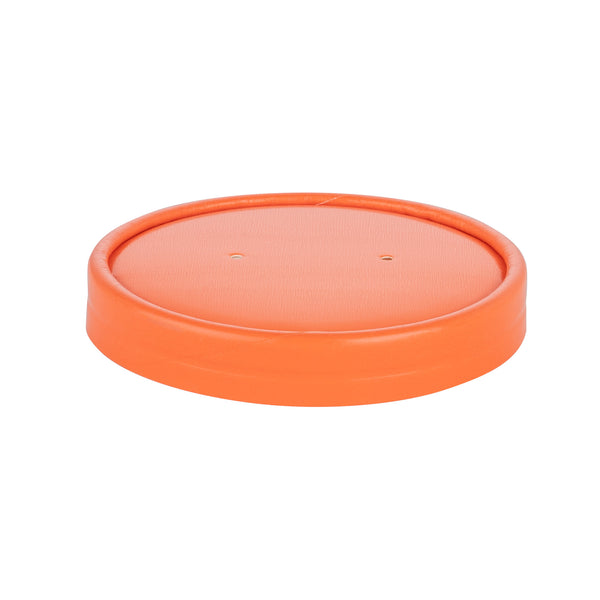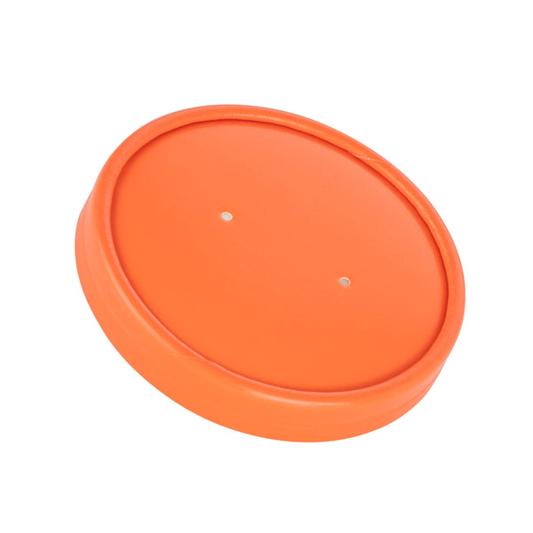 ROUND TANGERINE ORANGE PAPER SOUP CONTAINER LID - FITS 12 OZ