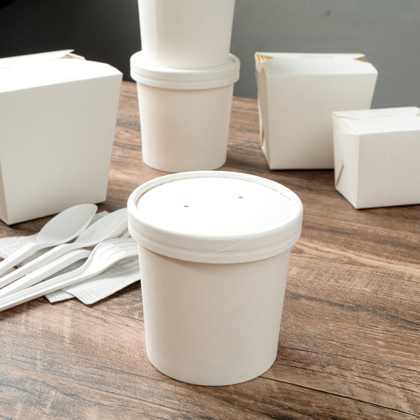 These tightly fastened paper lids perfectly seal in hot foods to avoid leaks and spills, reducing the risk of accidental messes and burns. Plus, they have raised rims so they can be stacked on top of each other.
