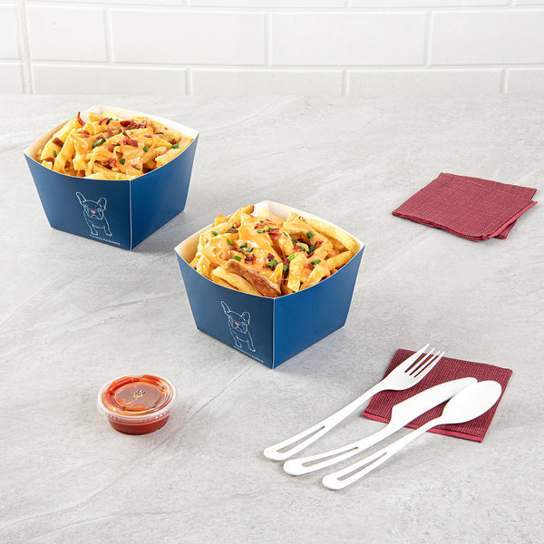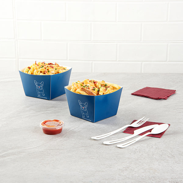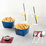 Designed for hot or cold food, these paper food boxes can hold pretzels, popcorn, or chicken wings. Serve guests with any type of snack.