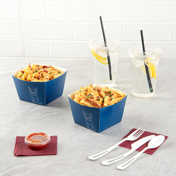 These paper snack boxes are equipped with a grease-impermeable PE lining to minimize the risk of messiness or unsightly blotches. Enjoy an elevated snacking experience!
