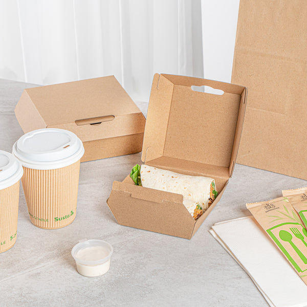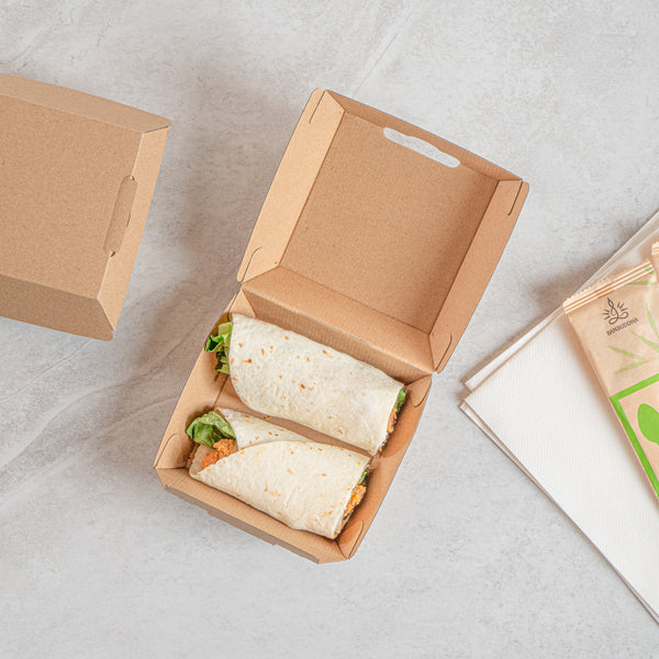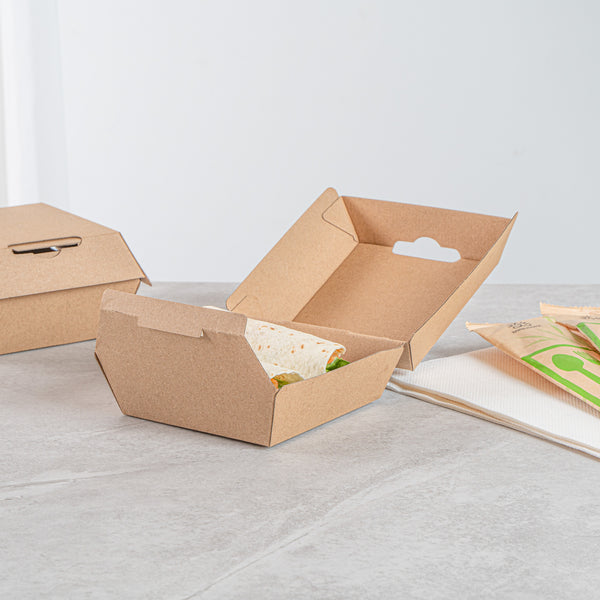 SQUARE KRAFT PAPER CORRUGATED CLAMSHELL CONTAINER