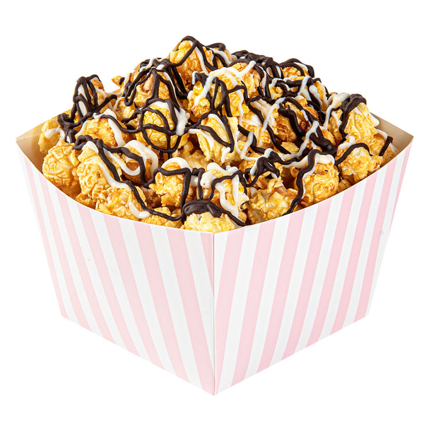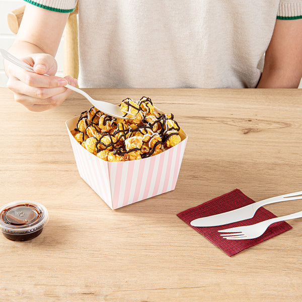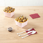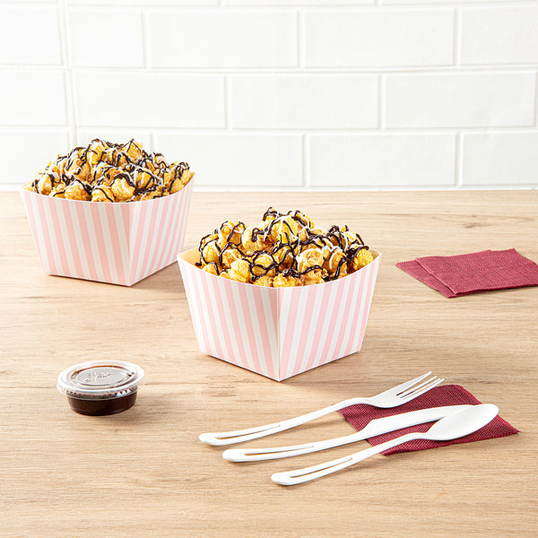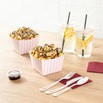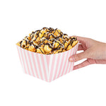 SQUARE PINK AND WHITE STRIPE PAPER SNACK BOX