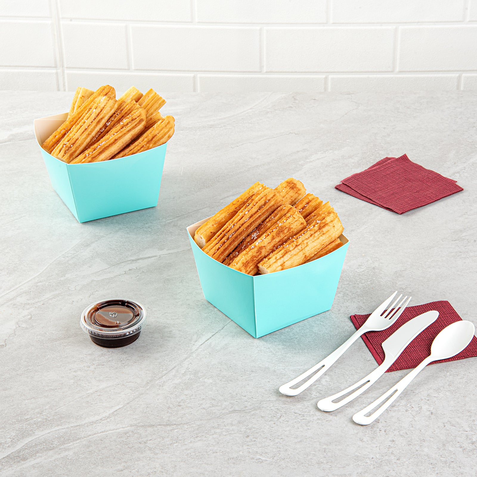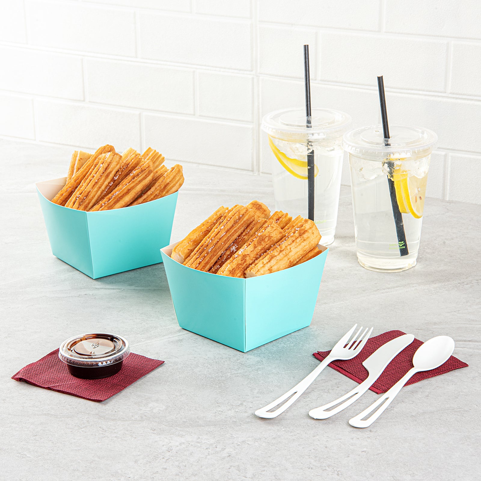 SQUARE TURQUOISE PAPER SNACK BOX