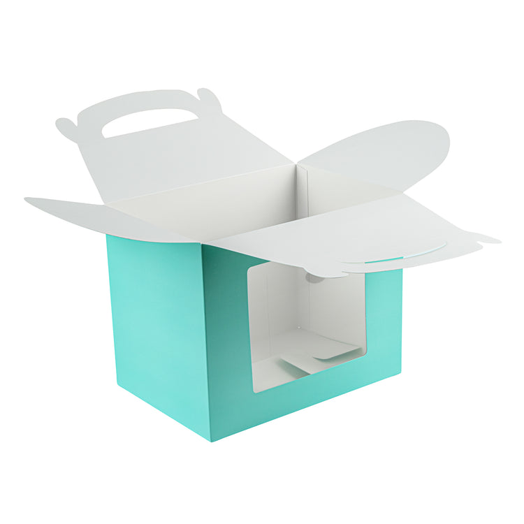 Showcase your treats with style using our Bio Tek Windowed Paper Gift Boxes. These turquoise gable boxes feature an integrated plastic window that beautifully displays your tasty baked goods, enticing customers to indulge. Measuring 10 inches in length, these paper gift boxes are designed with a built-in handle, ensuring easy and comfortable transport for caterers and event planners during weddings and other special occasions. Their freezer-safe design allows you to preserve frozen treats for later use, making them ideal for bakeries that need versatile wedding gift boxes. Constructed from recyclable paper, these boxes offer an eco-friendly packaging solution that aligns with sustainable practices. Choose these boxes to elevate your presentation and enhance customer satisfaction. Each order includes 25 Bio Tek Windowed Paper Gift Boxes.