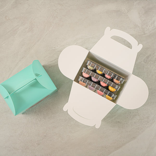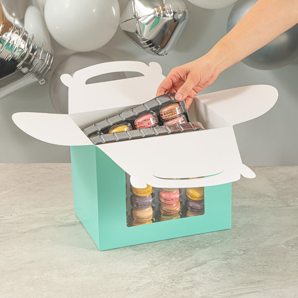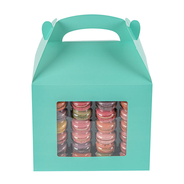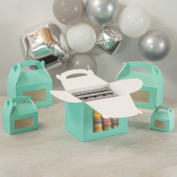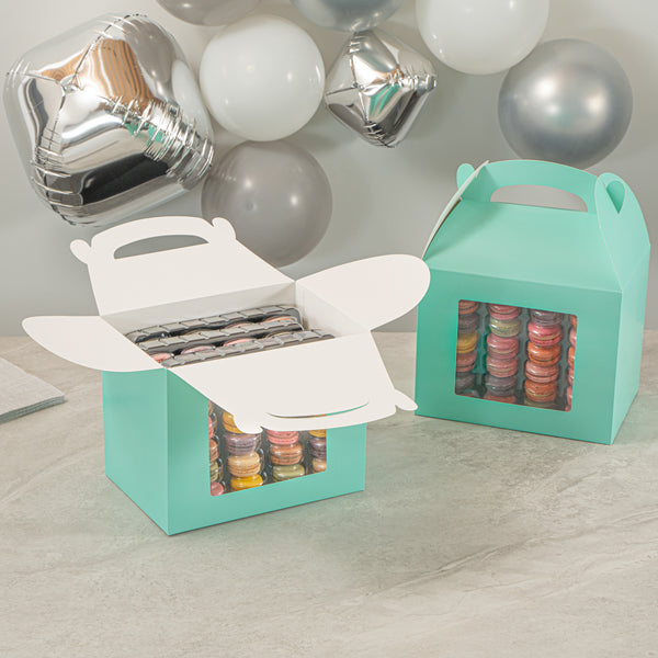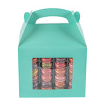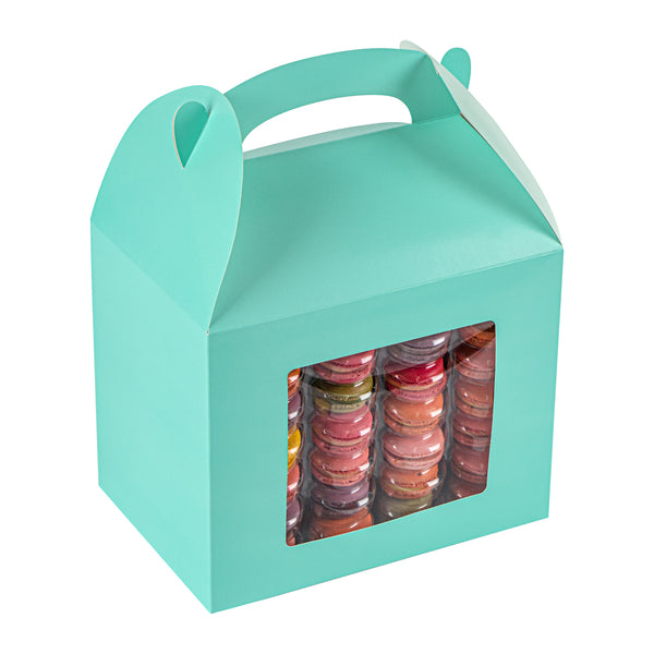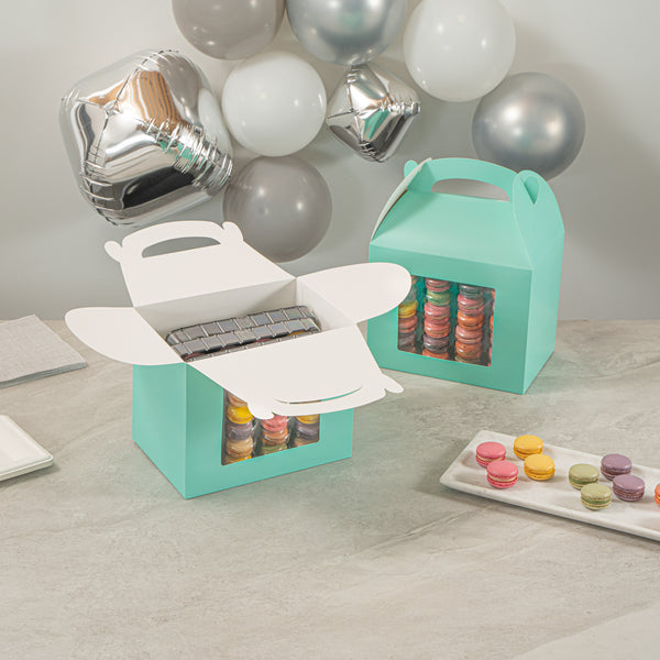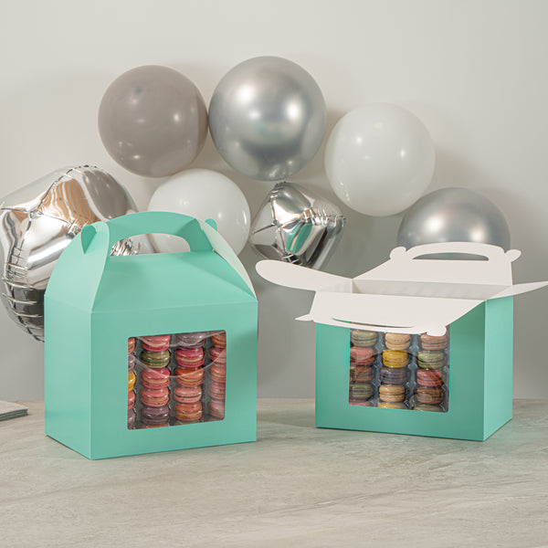 Showcase your treats with style using our Bio Tek Windowed Paper Gift Boxes. These turquoise gable boxes feature an integrated plastic window that beautifully displays your tasty baked goods, enticing customers to indulge. Measuring 10 inches in length, these paper gift boxes are designed with a built-in handle, ensuring easy and comfortable transport for caterers and event planners during weddings and other special occasions. Their freezer-safe design allows you to preserve frozen treats for later use, making them ideal for bakeries that need versatile wedding gift boxes. Constructed from recyclable paper, these boxes offer an eco-friendly packaging solution that aligns with sustainable practices. Choose these boxes to elevate your presentation and enhance customer satisfaction. Each order includes 25 Bio Tek Windowed Paper Gift Boxes.