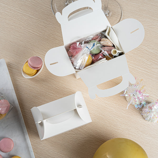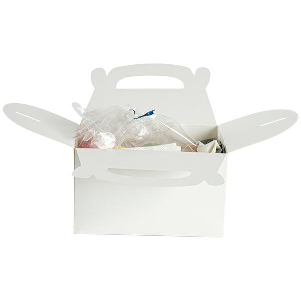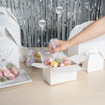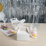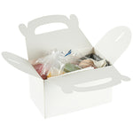 Protect your treats from grease and spills with ease. Bio Tek Greaseproof Kraft Paper Favor Boxes feature a greaseproof lining that effectively prevents oils from seeping through, keeping your delicious creations in pristine condition. These kraft paper favor boxes are designed with a built-in handle, enabling you to carry orders comfortably and efficiently. Perfect for any foodservice establishment, the freezer-safe design allows you to store treats for later use, maintaining their freshness and quality. With dimensions of 6 inches in length, 3.5 inches in width, and 3.5 inches in height, these cardboard gable boxes are ideal for small to medium-sized items. Made from paper, these small gift boxes with handles are both recyclable and eco-friendly, making them a sustainable choice for your business. Elevate your packaging game and ensure customer satisfaction with these versatile favor boxes. Each order includes 100 Bio Tek Greaseproof Kraft Paper Favor Boxes.