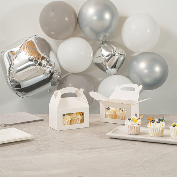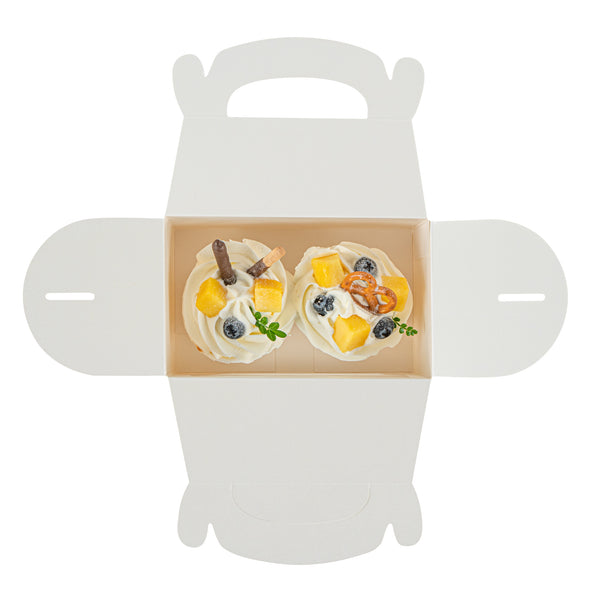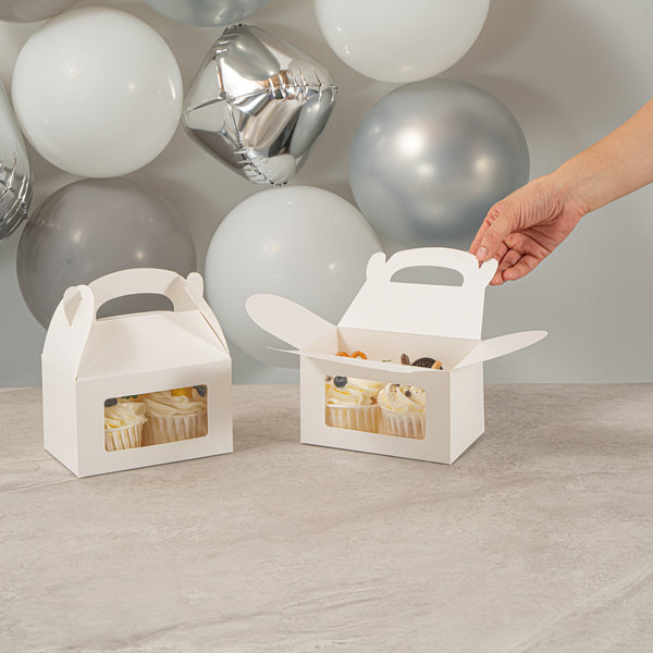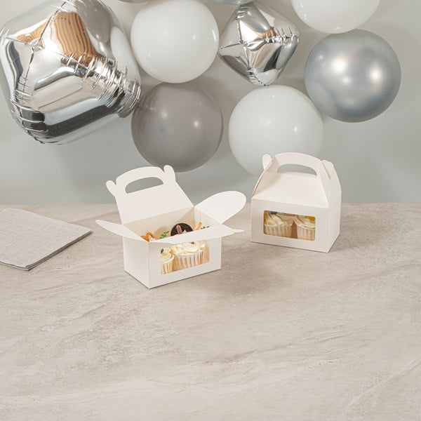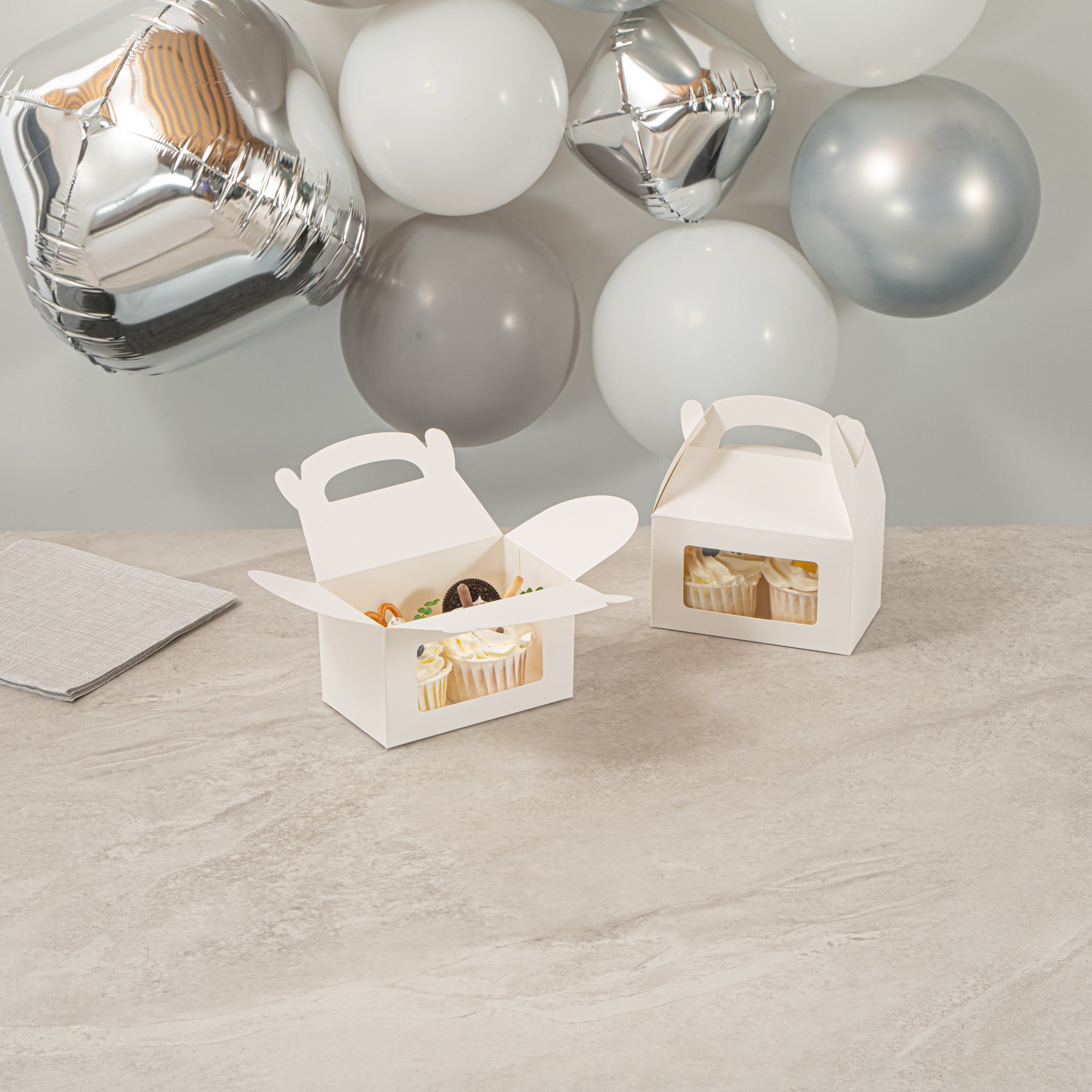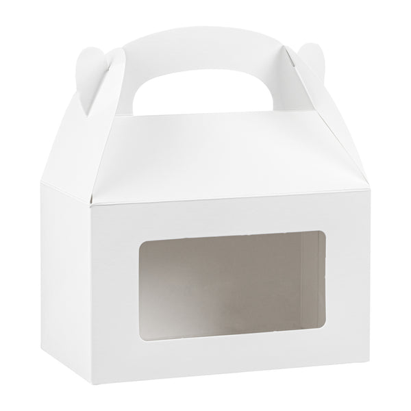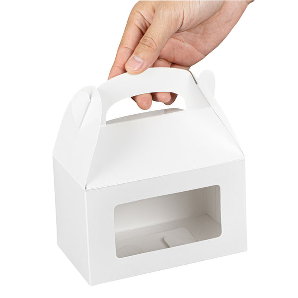 Showcase your delicious creations with ease using Bio Tek White Paper Gable Boxes / Take Out Containers. Featuring an integrated plastic window, these small gift boxes enhance visibility, allowing customers to quickly select their favorite treats. The built-in handle on these window gift boxes ensures effortless transport, making it convenient to carry multiple orders at a time. Made from sturdy paper, these kraft paper gift boxes are freezer-safe, preserving the freshness of your delicacies for extended storage without compromising quality. With dimensions of 6 inches in length, 3.5 inches in width, and 3.5 inches in height, these boxes are perfectly sized for a variety of desserts and snacks. Enhance your presentation and maintain the integrity of your offerings with these greaseproof, recyclable boxes. Improve your food packaging strategy today with these versatile cold food-friendly options. Sold in a 100 count box.
