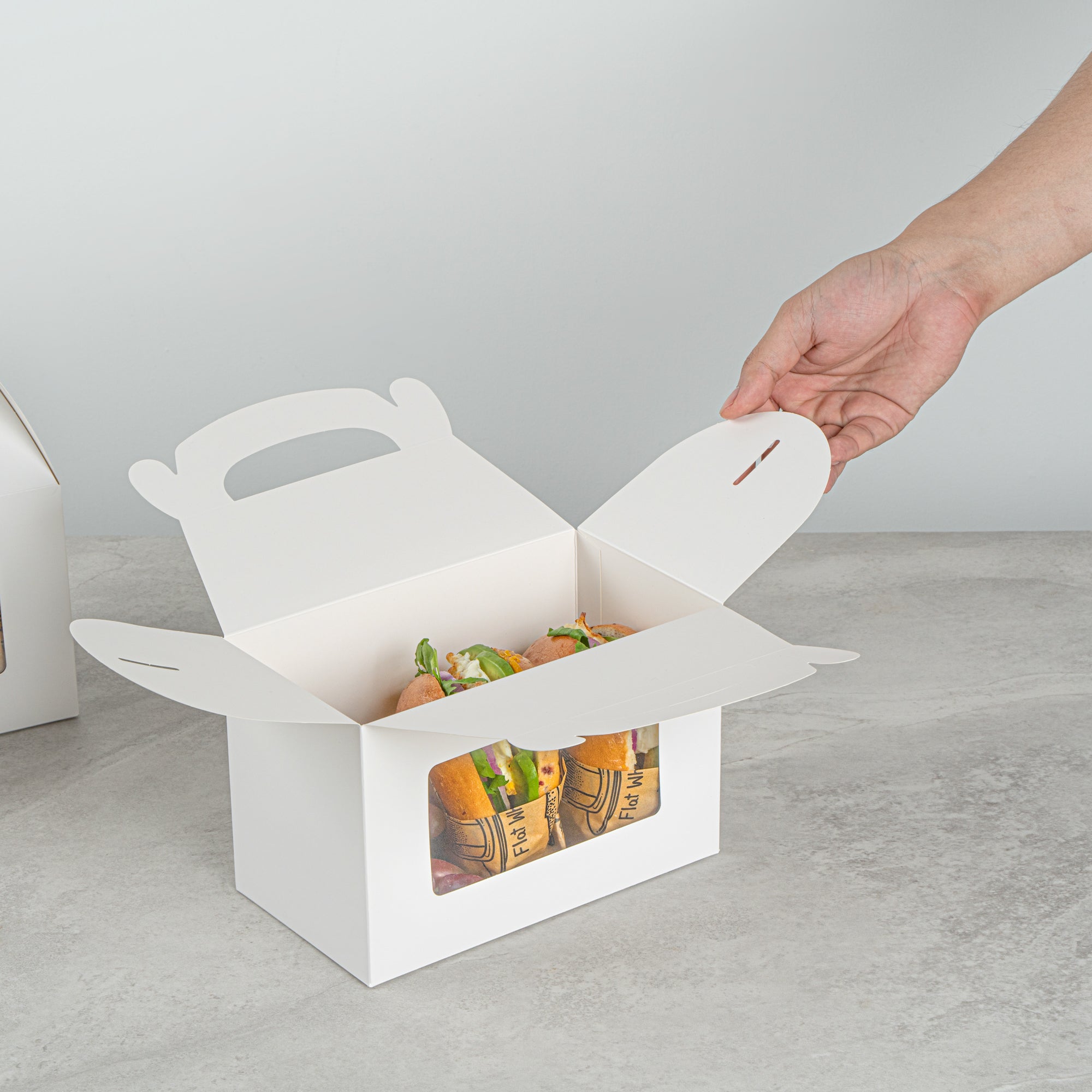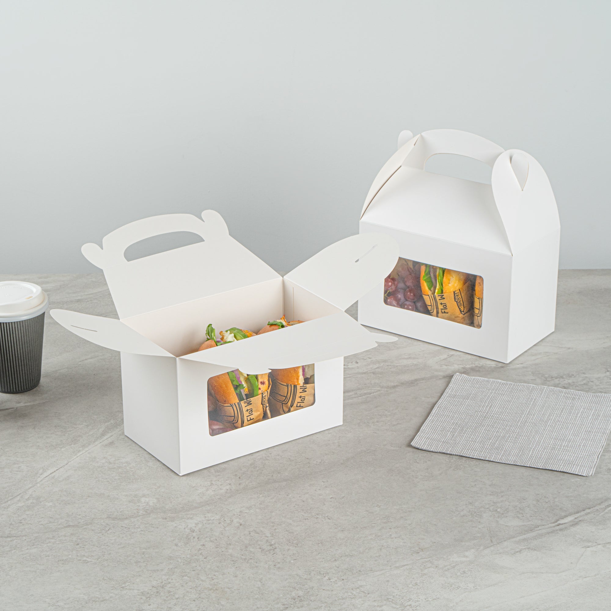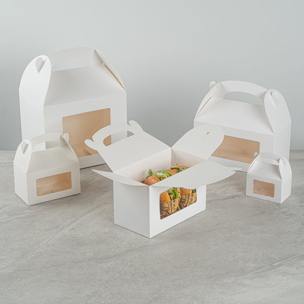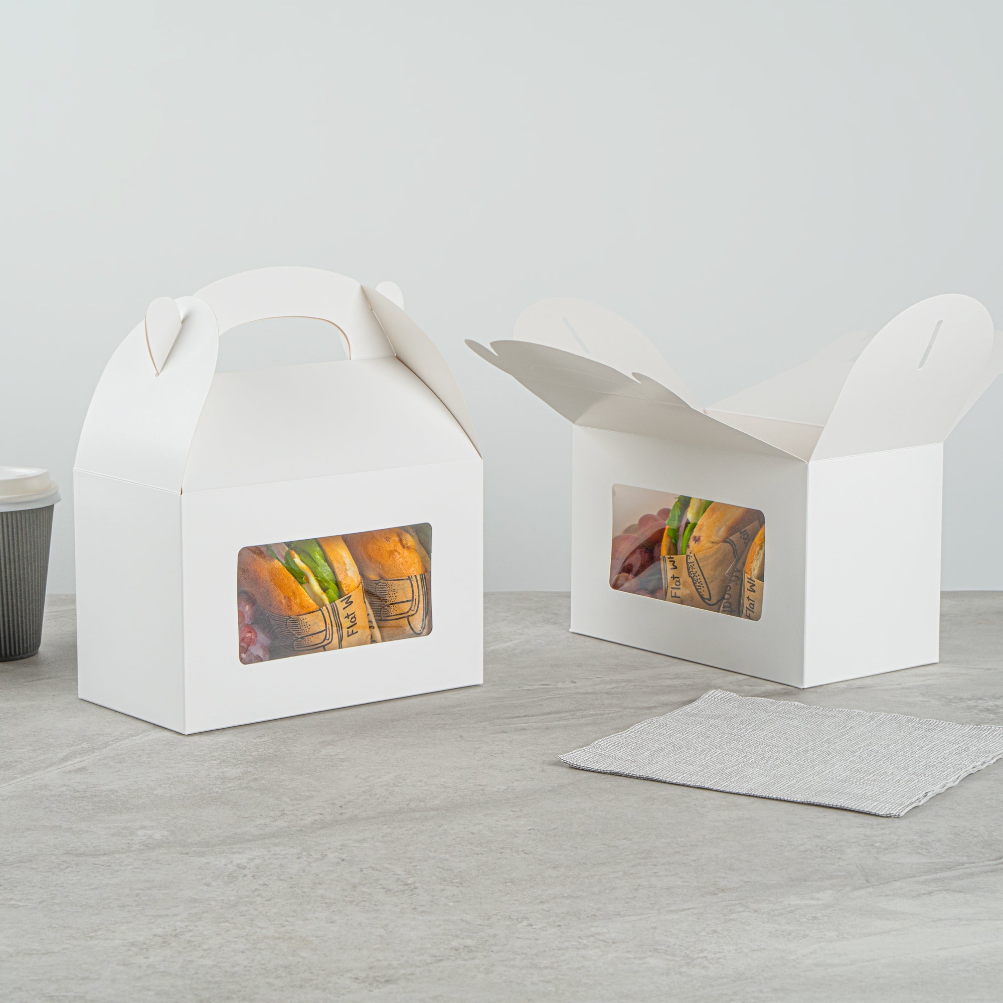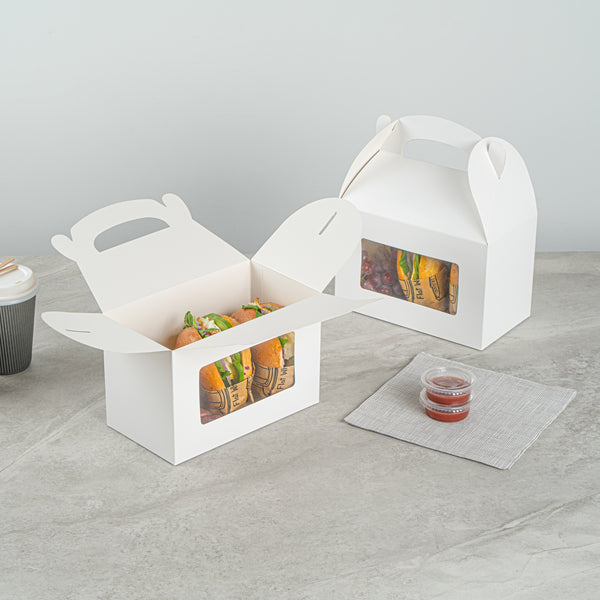 WHITE PAPER GABLE BOX / TAKE OUT CONTAINER - GREASEPROOF, WITH WINDOW
