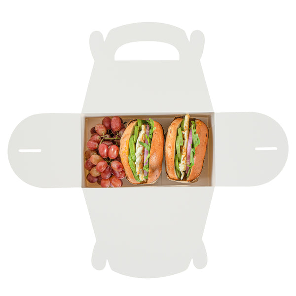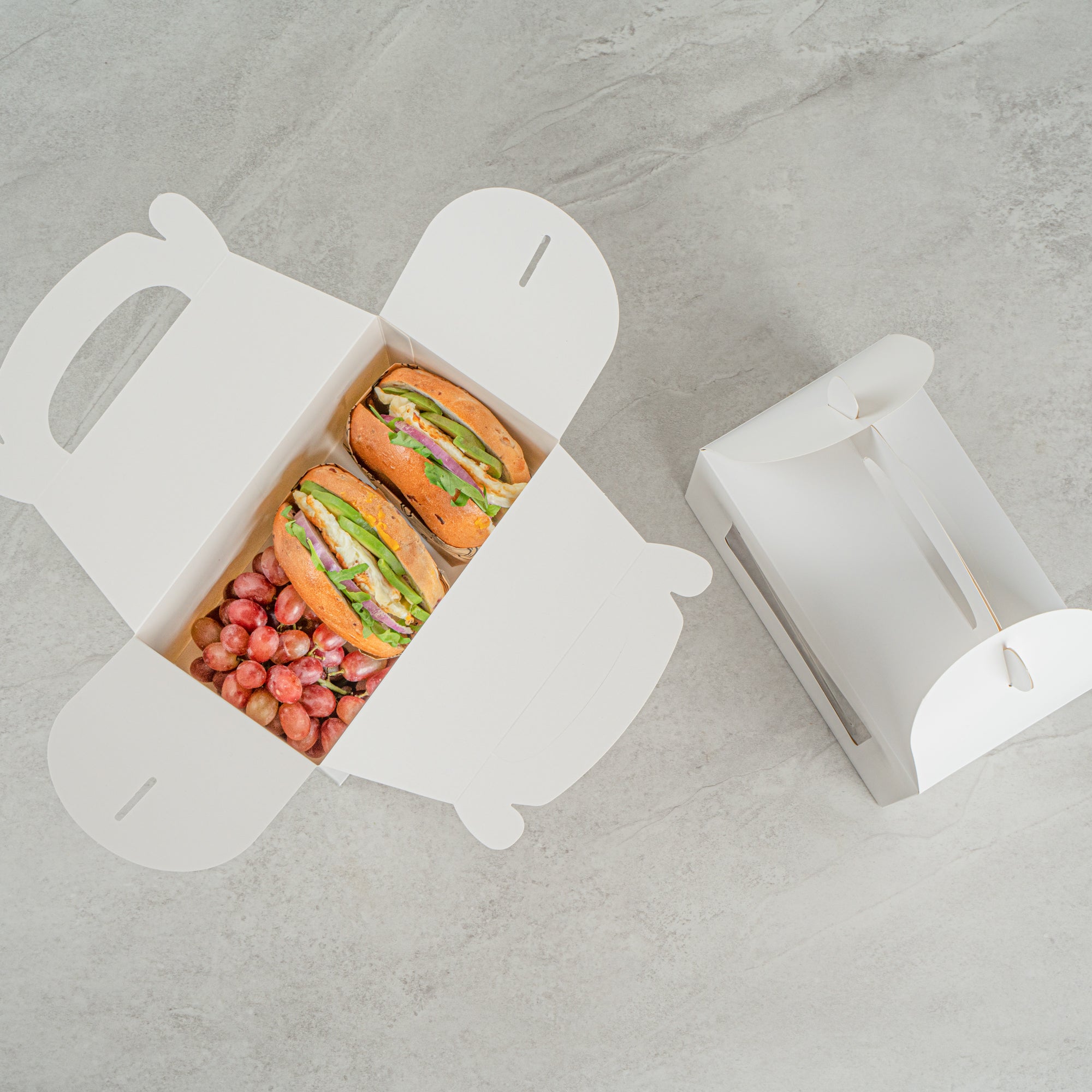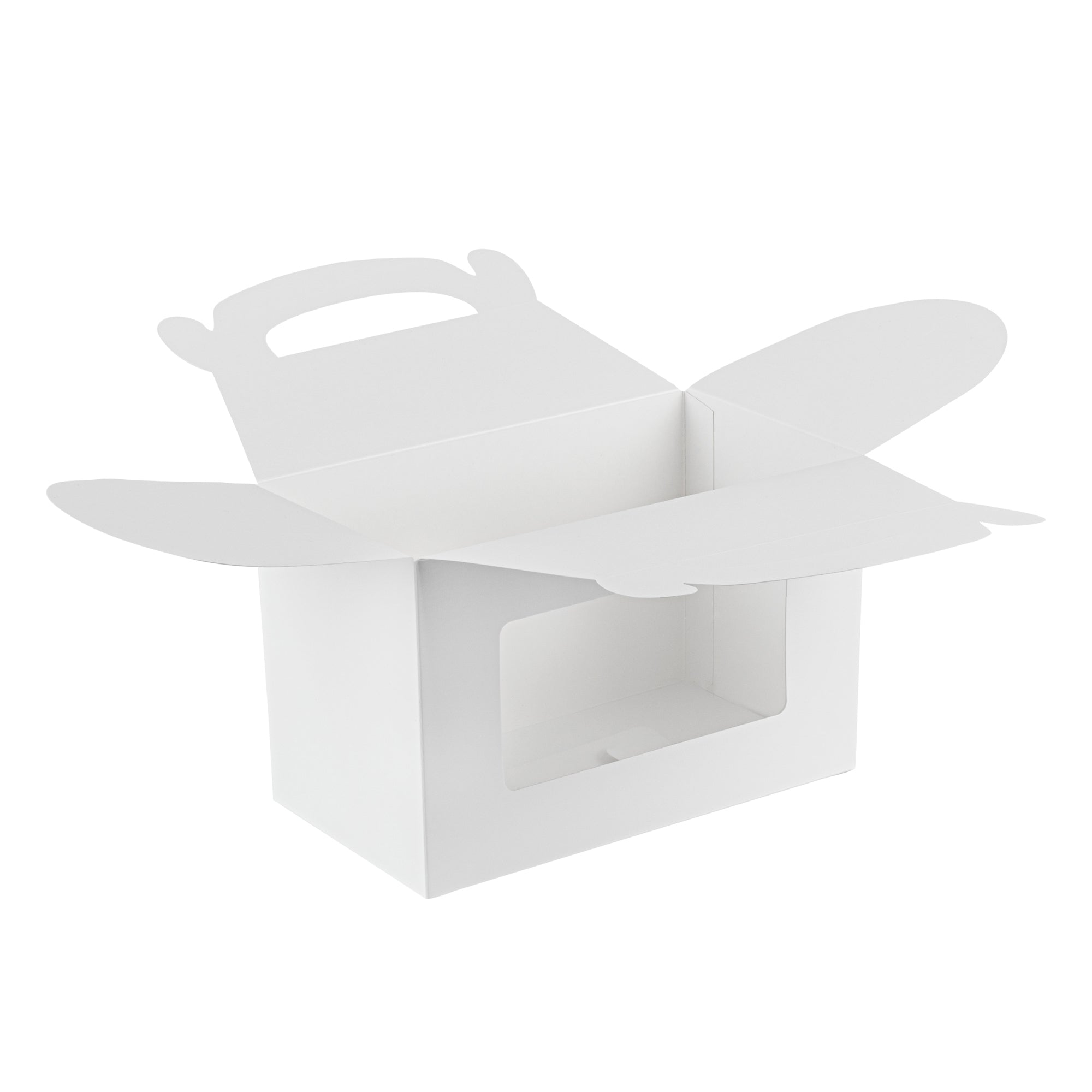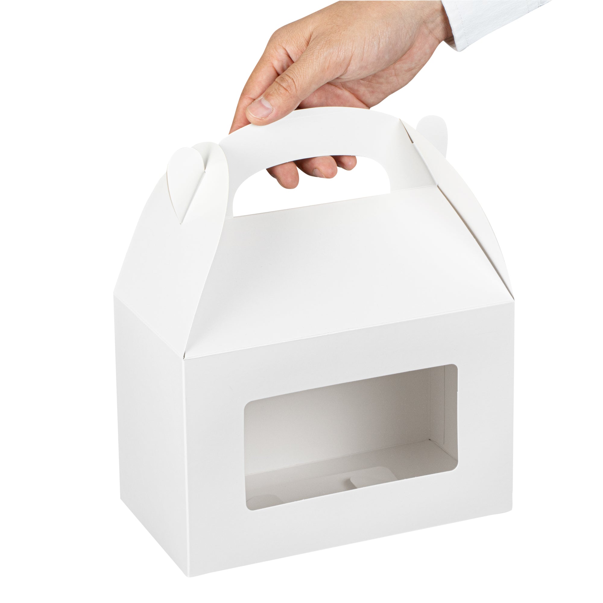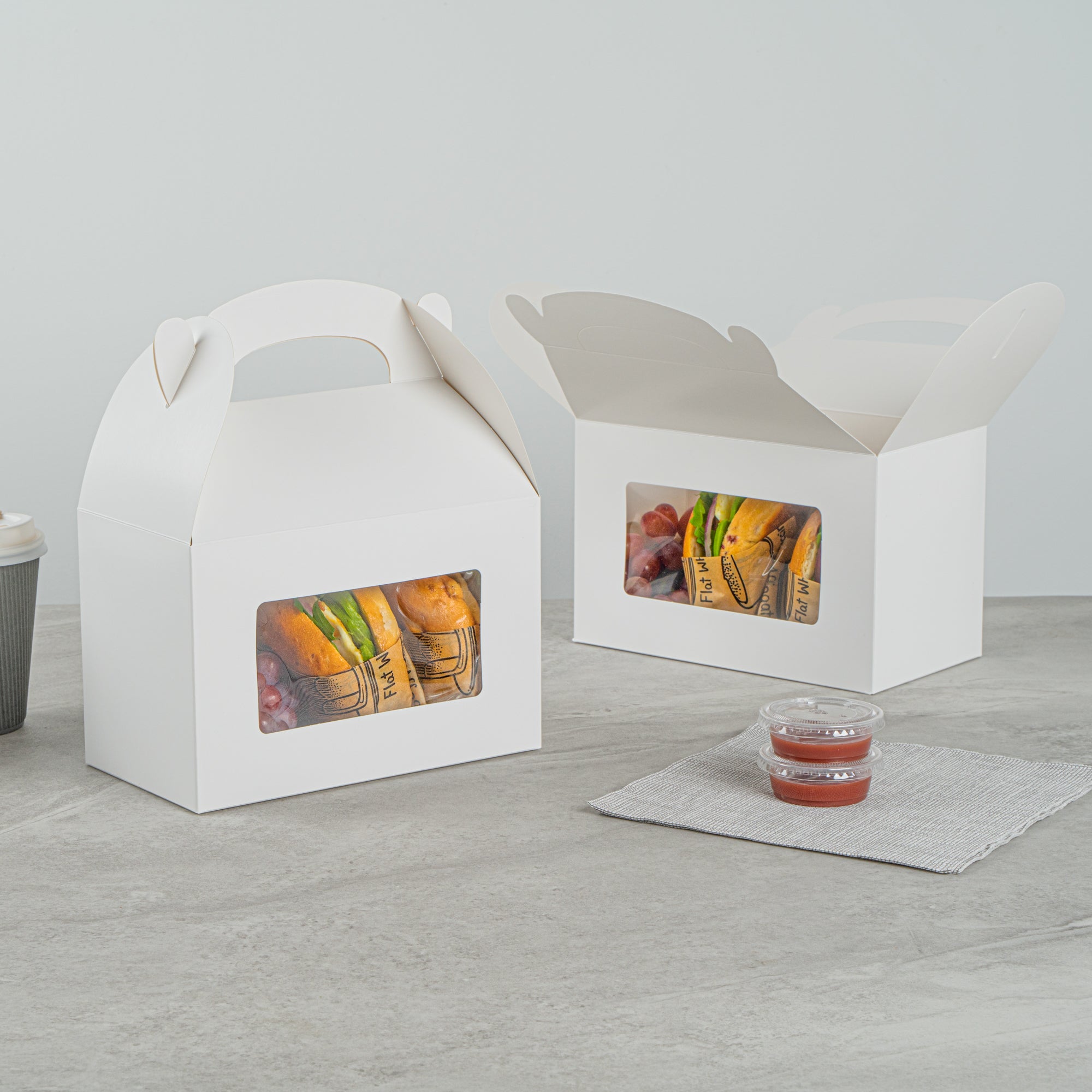 Transport your culinary creations with ease using Bio Tek White Paper Gable Boxes / Take Out Containers. Designed with a greaseproof lining, these white paper boxes maintain the pristine presentation of your dishes by preventing oil seepage, ensuring your customers receive fresh, appetizing meals every time. The integrated plastic window offers a tempting glimpse of the contents inside, enhancing customer appeal and driving impulse purchases of gable boxes. With dimensions of 8.5 inches in length, 4.75 inches in width, and 5.5 inches in height, these boxes provide ample space for a variety of food items, making them ideal as kraft favor boxes for events and celebrations. The built-in ergonomic handle allows for comfortable and secure transportation, reducing spillage and improving user experience when using cardboard gift boxes. Elevate your food presentation and transport convenience with these recyclable, cold food-friendly, and freezer-safe boxes today. Sold in a 100 count box.