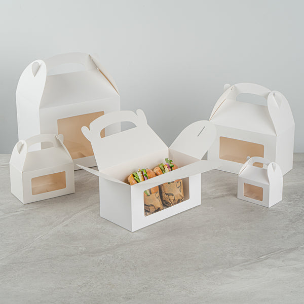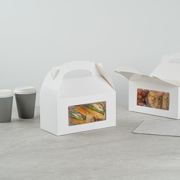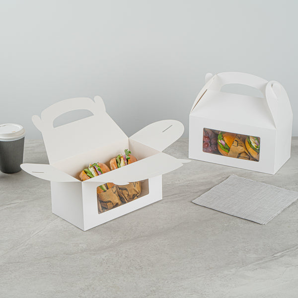 WHITE PAPER GABLE BOX / TAKE OUT CONTAINER - GREASEPROOF, WITH WINDOW