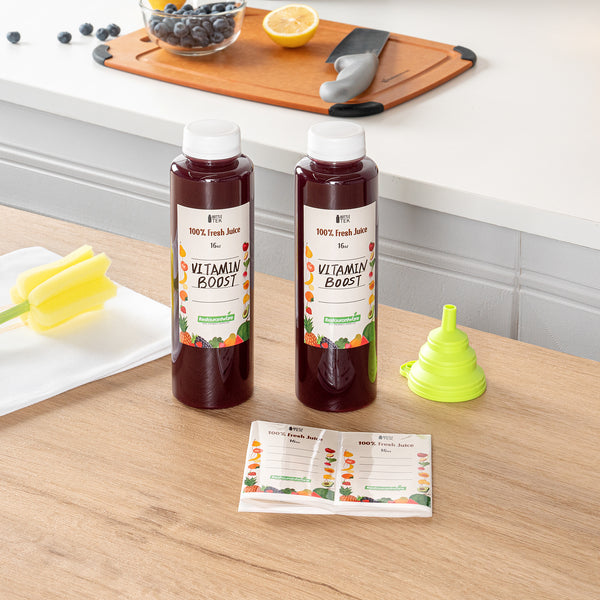 Equipped with twist-on caps, these empty juice containers ensure a tamper-evident seal, minimizing potential leaks and spills. Ideal for securely storing and transporting your favorite beverages!