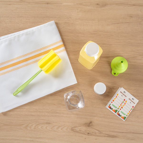 Say goodbye to spills with this convenient addition! These empty water bottles are equipped with a silicone funnel for smooth and zero-mess juice bottling.