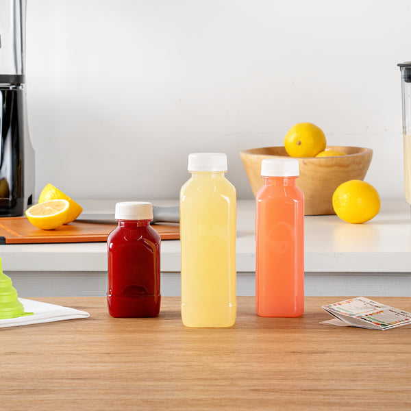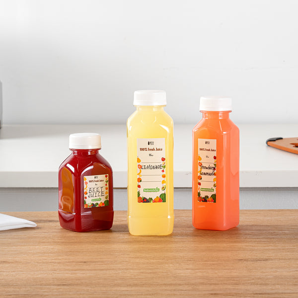 Equipped with twist-on caps, these empty juice containers ensure a tamper-evident seal, minimizing potential leaks and spills. Ideal for securely storing and transporting your favorite beverages!
