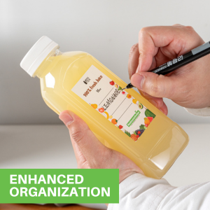 These clear plastic bottles feature sticker labels, showcasing the bottle's capacity and offering space to jot down additional information. Stay organized with this labeling solution.