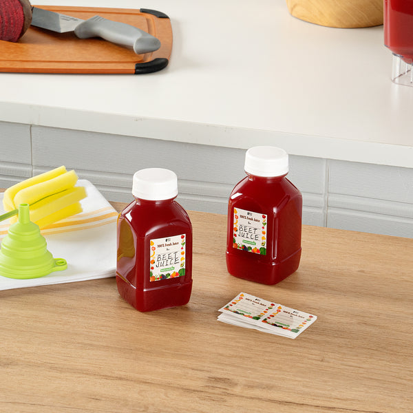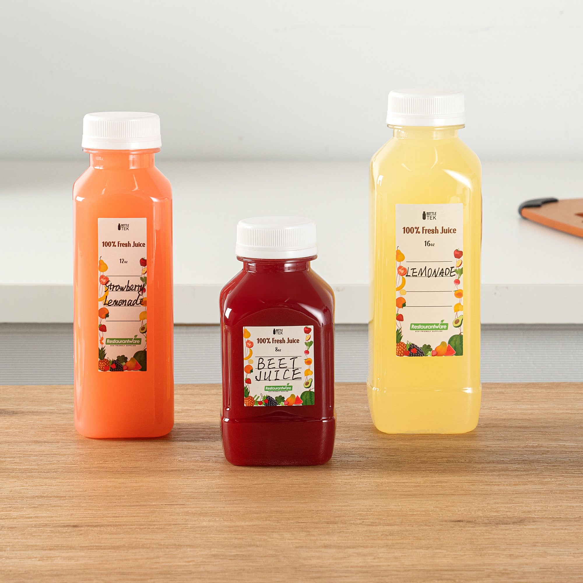 Equipped with twist-on caps, these empty juice containers ensure a tamper-evident seal, minimizing potential leaks and spills. Ideal for securely storing and transporting your favorite beverages!