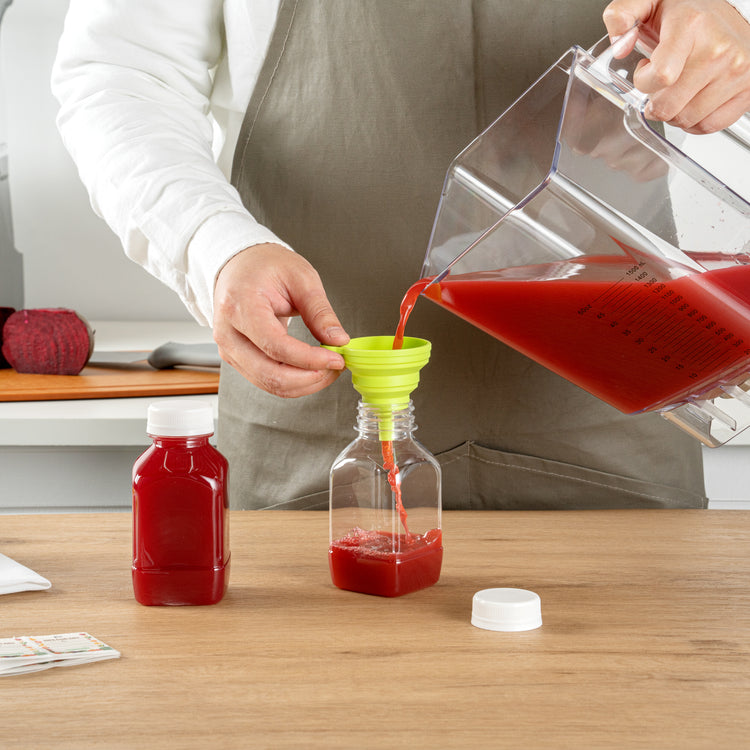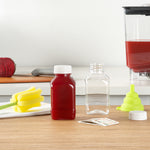 Say goodbye to spills with this convenient addition! These empty water bottles are equipped with a silicone funnel for smooth and zero-mess juice bottling.