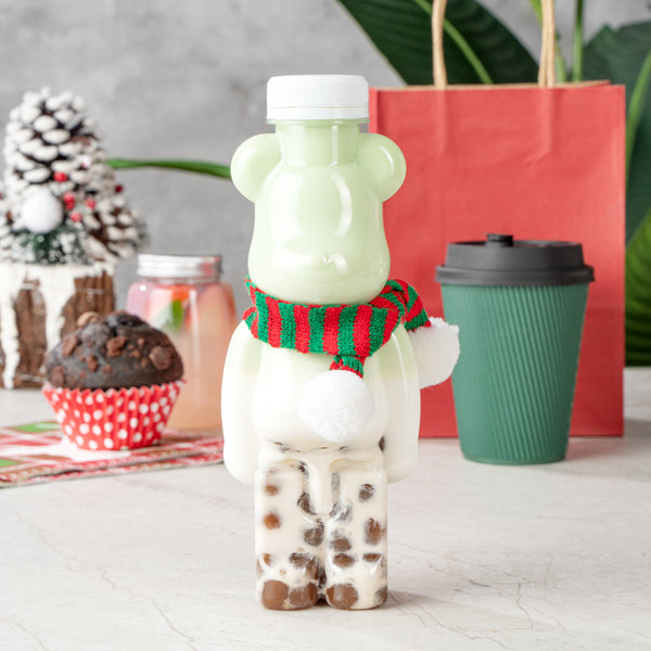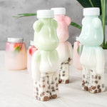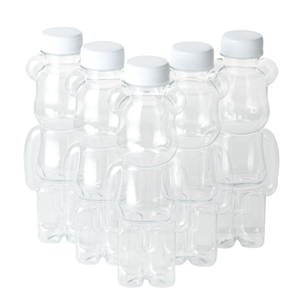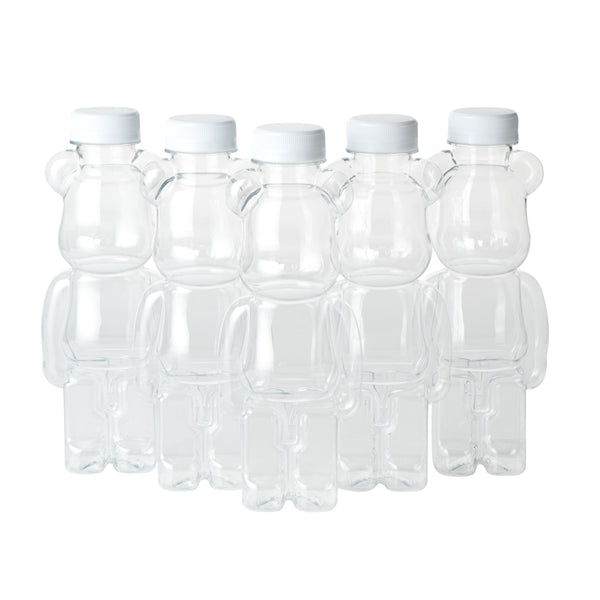 12 OZ BEAR-SHAPED CLEAR PLASTIC JUICE BOTTLE - WITH SAFETY CAP