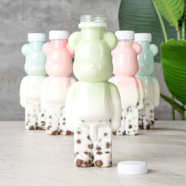 Create cute juice bottles for young patrons with our Bottle Tek 12-ounce Bear-Shaped Clear Plastic Juice Bottles. These plastic juice bottles are shaped like bears, making them great for creating drink items for children. Each of these juice bottles includes a safety cap that leaves behind a plastic ring that detaches from the cap once it is twisted off. The clear finish of these juice bottles with caps displays the hues of your juices and appears as if the bear is the same color as your beverages. Crafted from PET plastic, these clear juice bottles are recyclable to shorten the cleaning process at your catered events. Holding up to 12 ounces, these cute juice bottles measure 3.25 inches long by 2.75 inches wide by 8.25 inches tall. Sold in a 100 count box.