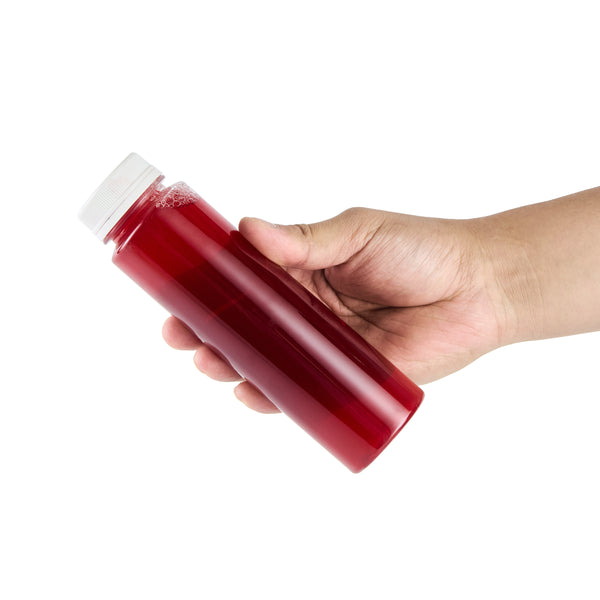 8 OZ ROUND CLEAR PLASTIC COLD PRESSED JUICE BOTTLE - WITH SAFETY CAP