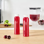 Conveniently package and display your freshly squeezed lemonades with our Bottle Tek8-ounce Round Clear Plastic Cold Pressed Juice Bottles. These juice bottles are built with premium plastic and are designed to keep your beverages fresh longer. With an 8-ounce holding capacity, these clear plastic bottles are ideal for packing cold-pressed juices, vibrant smoothies, fresh lemonades, or delectable cold-brewed coffees. Equipped with twist-on safety caps, these plastic juice bottles provide a tamper-evident and airtight seal to keep your juices fresh and ready-to-enjoy. These plastic bottles with caps have a clear finish that beautifully showcases the appealing color of the contents, while their white caps offer a sleek, clean look. For an easy cleanup post-drink, these round juice bottles are disposable. These disposable bottles measure 2 inches in diameter by 6.75 inches in height and can hold up to 8 ounces. Shipped in a 100 count box.