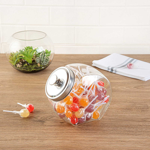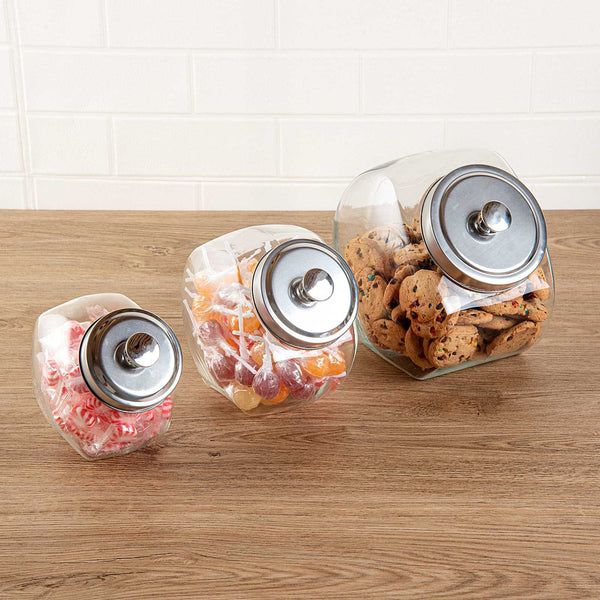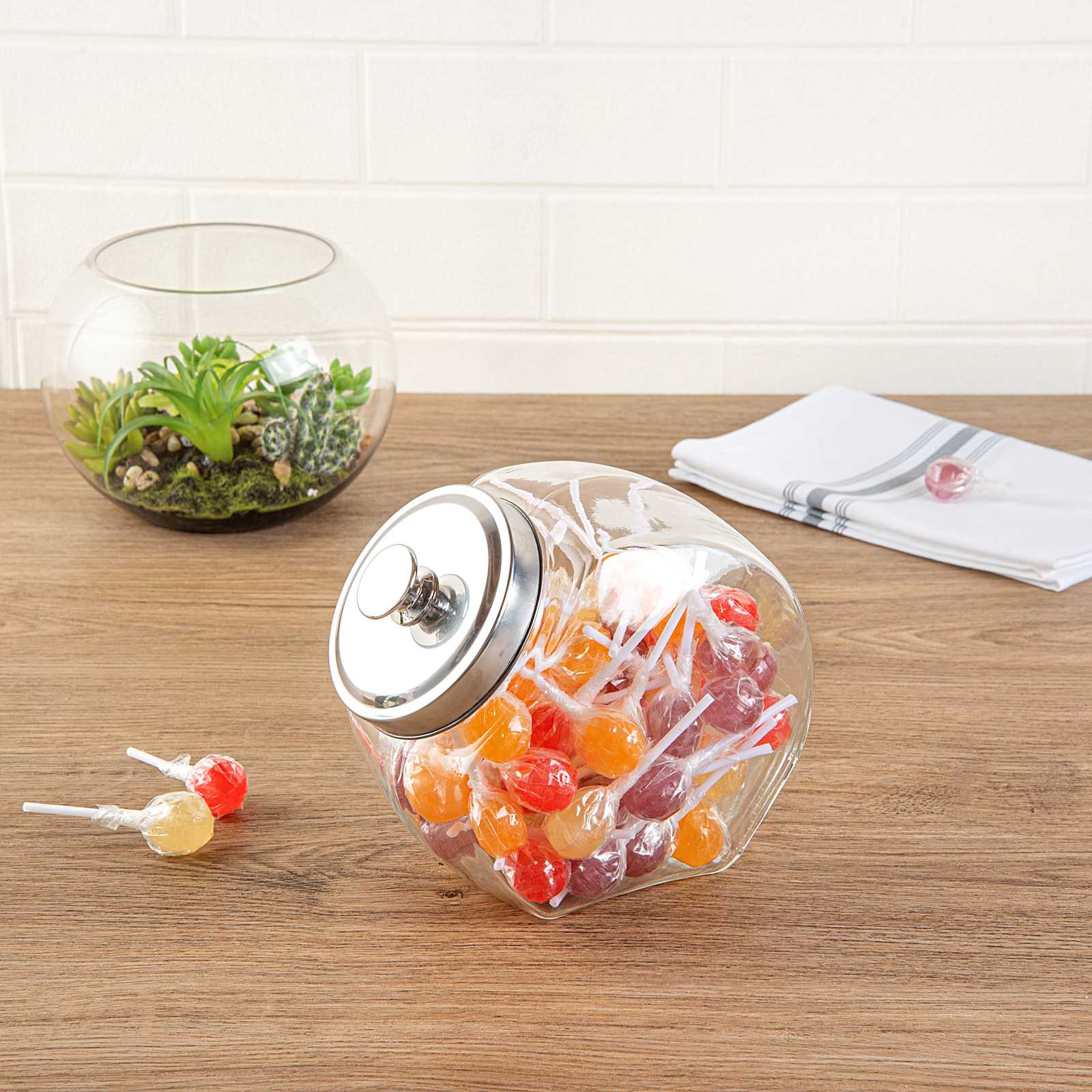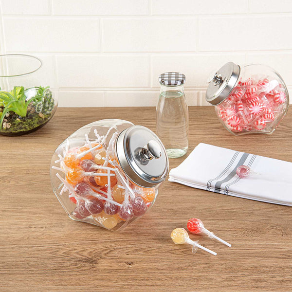 Extend the freshness of your dry goods with the Vetri Glass Candy Jar Set. These airtight glass jars boast reliable seals that keep ingredients fresh for longer, ensuring the quality and taste of your stored items. With a generous 0.56-gallon capacity each, these countertop display jars accommodate a variety of contents — from candies to bulk ingredients — perfect for enhancing kitchen organization. The wide openings of the Vetri Glass Candy Jars allow for easy access, making it convenient to scoop out ingredients or treats, while their transparent finish elegantly showcases the contents, creating an eye-catching display in any commercial kitchen or cafe. Crafted from sturdy glass, each jar ensures durability and clear visibility, while the chrome lids offer a secure fit to protect against contaminants. Make a stylish addition to your storage solutions and simplify your operations with this versatile glass candy jar set. Each order includes 3 Vetri Glass Candy Jars.