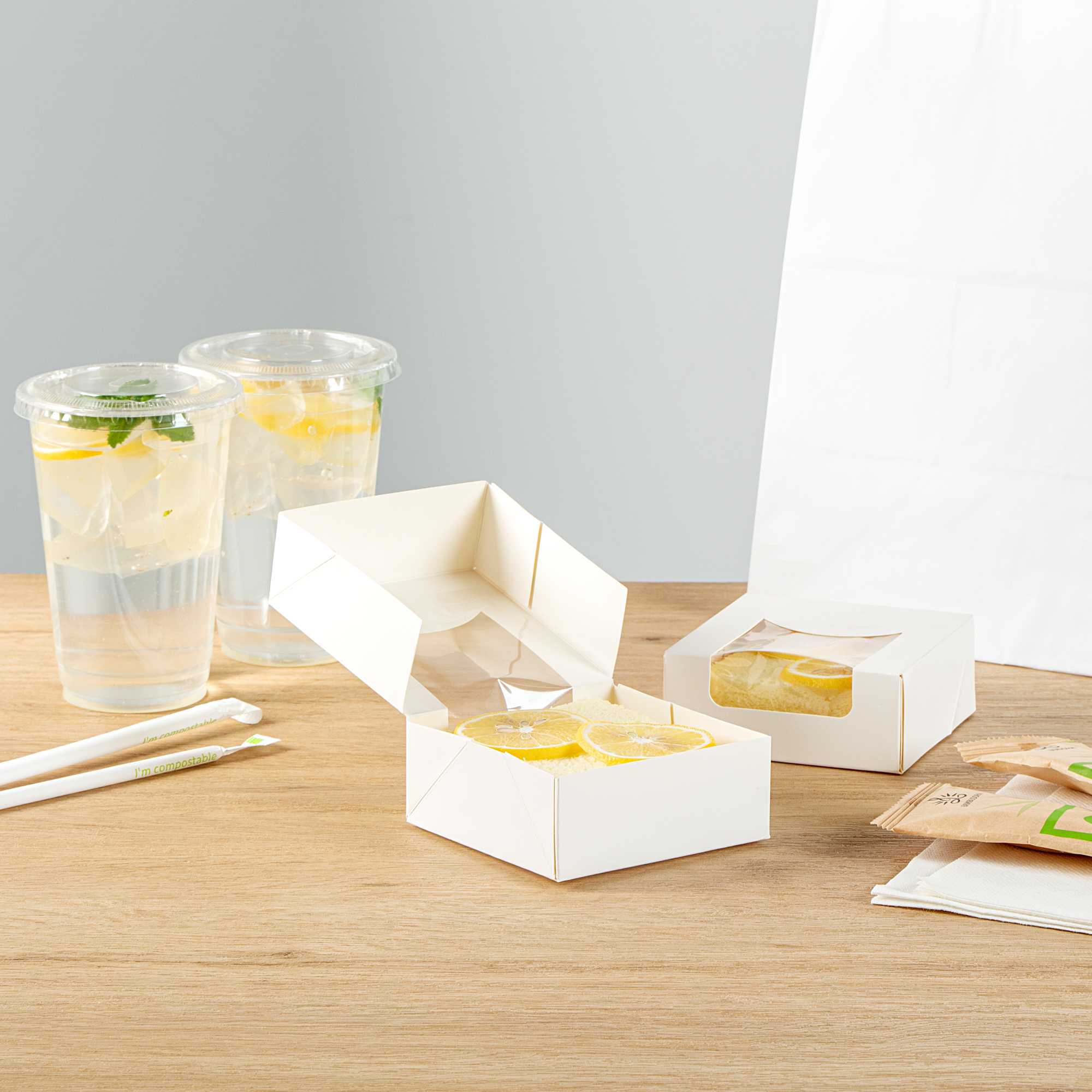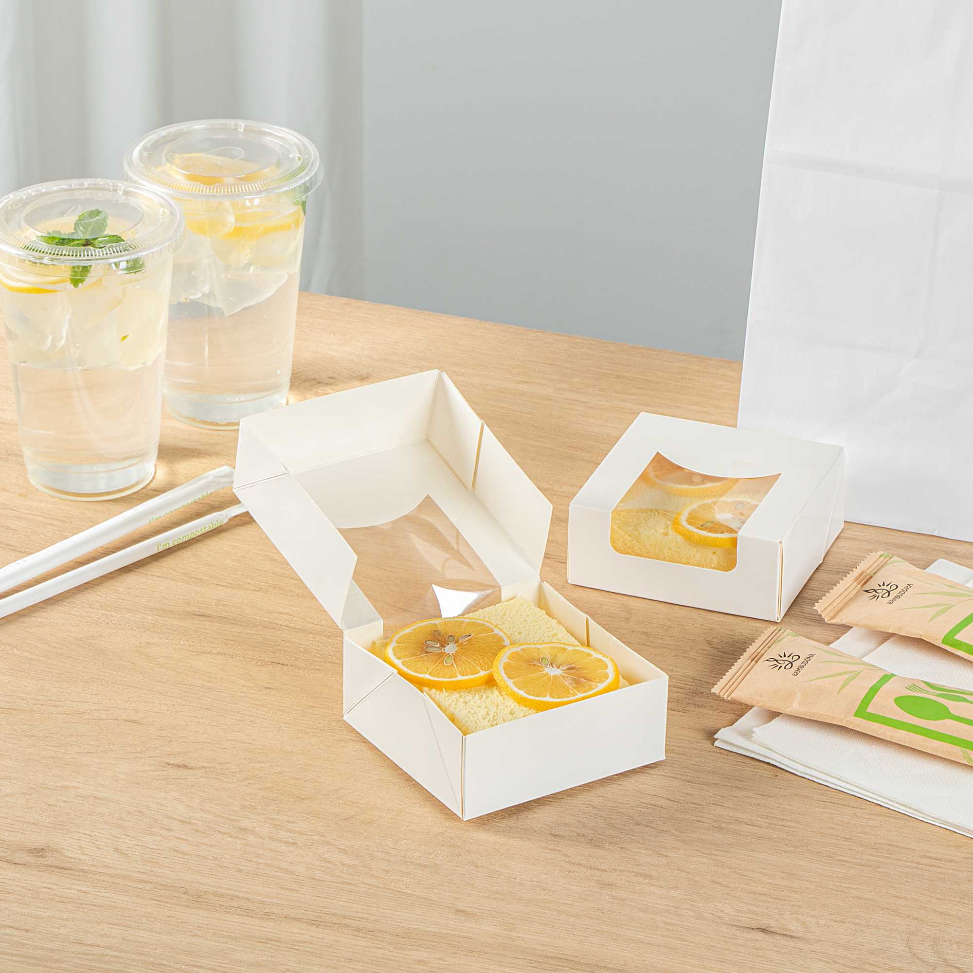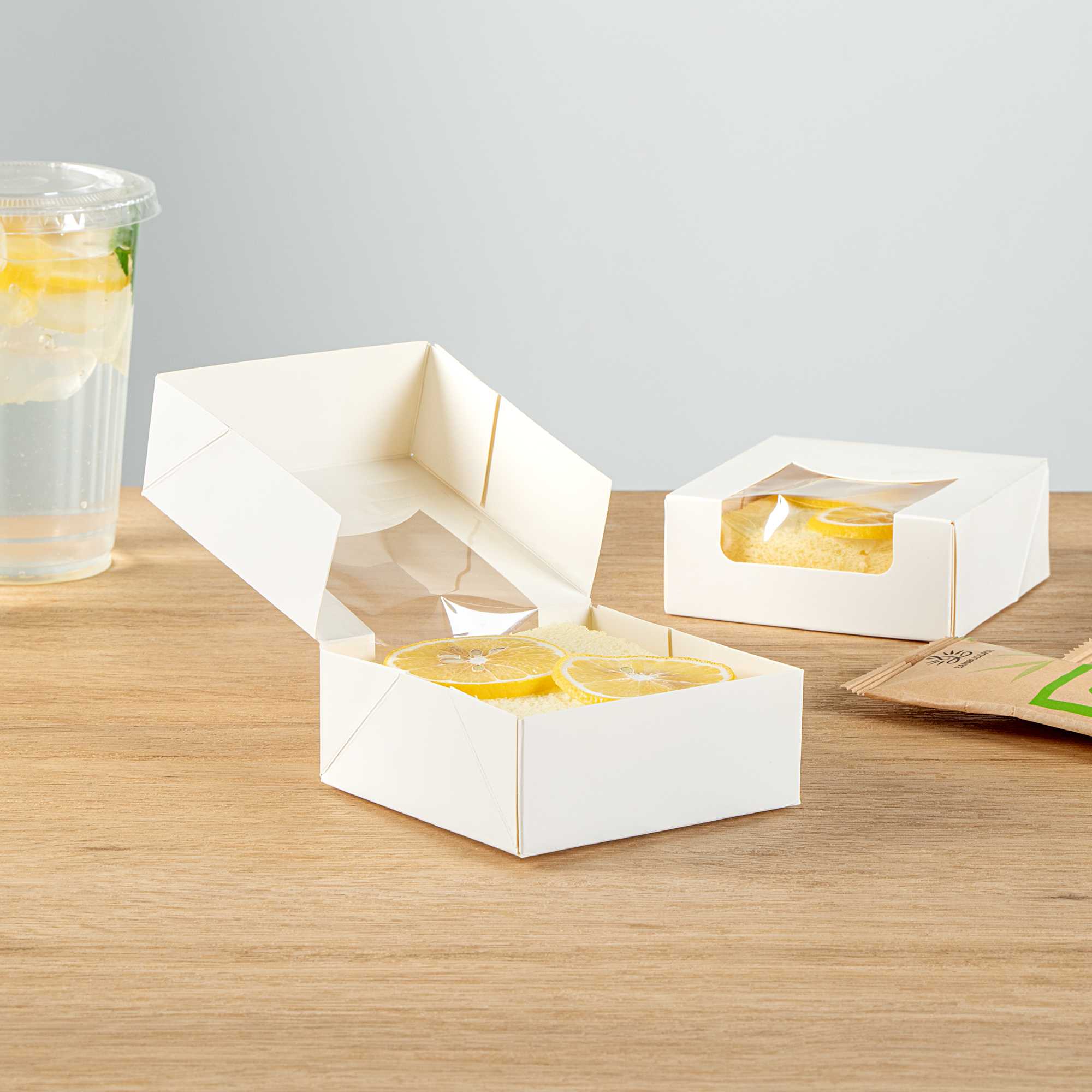 Our take out containers have built-in or detachable lids that make your desserts or special gifts instantly portable.