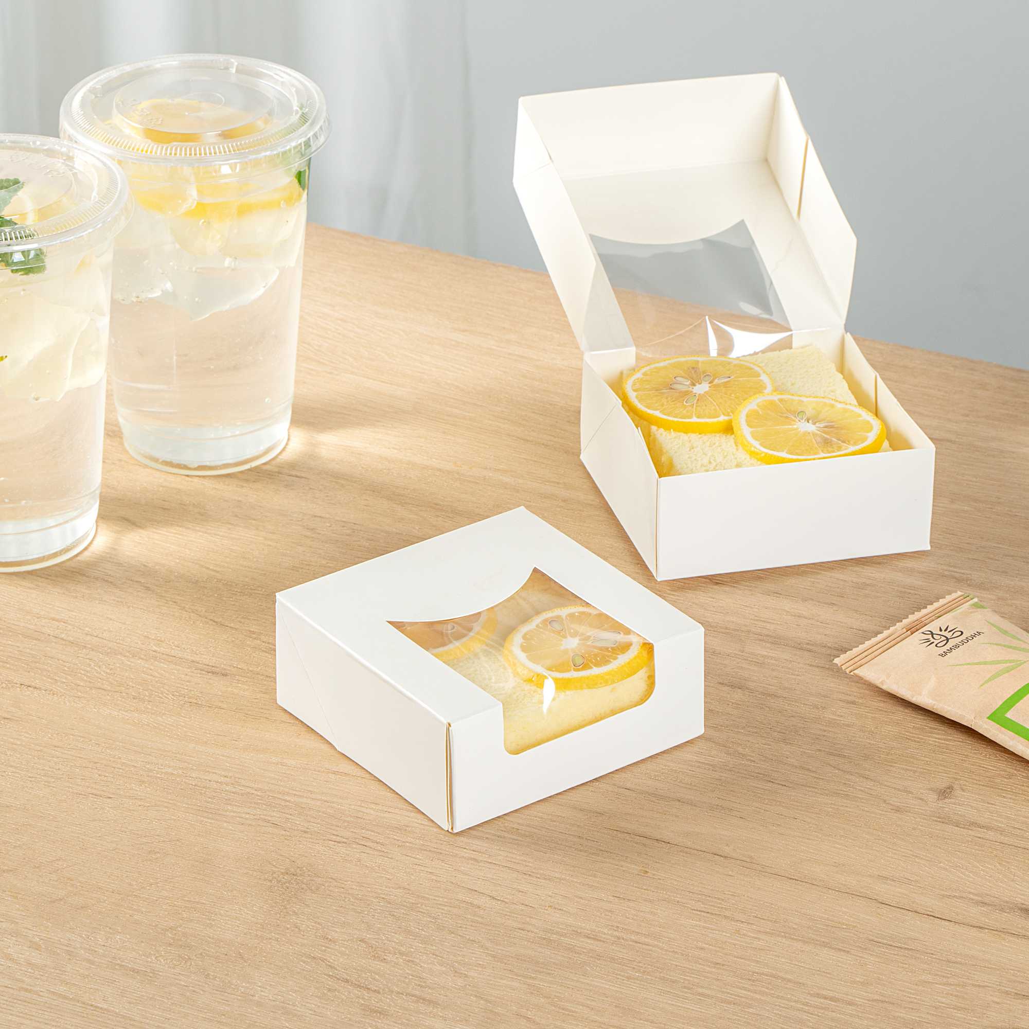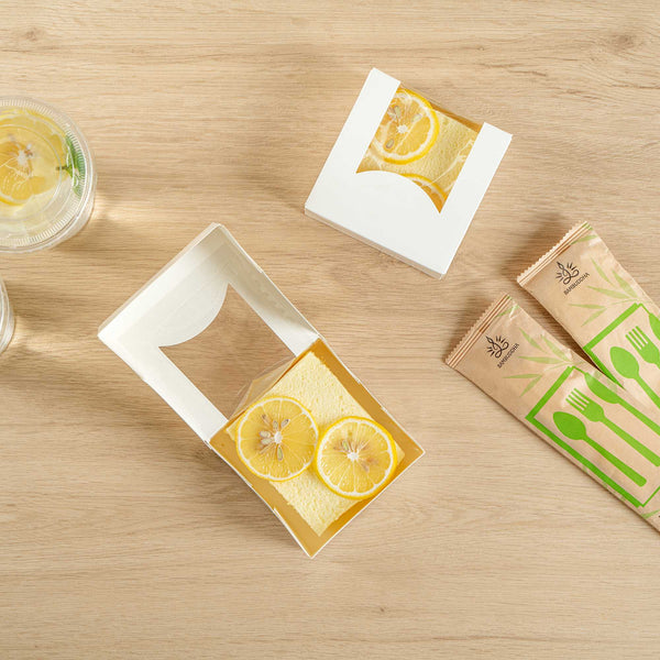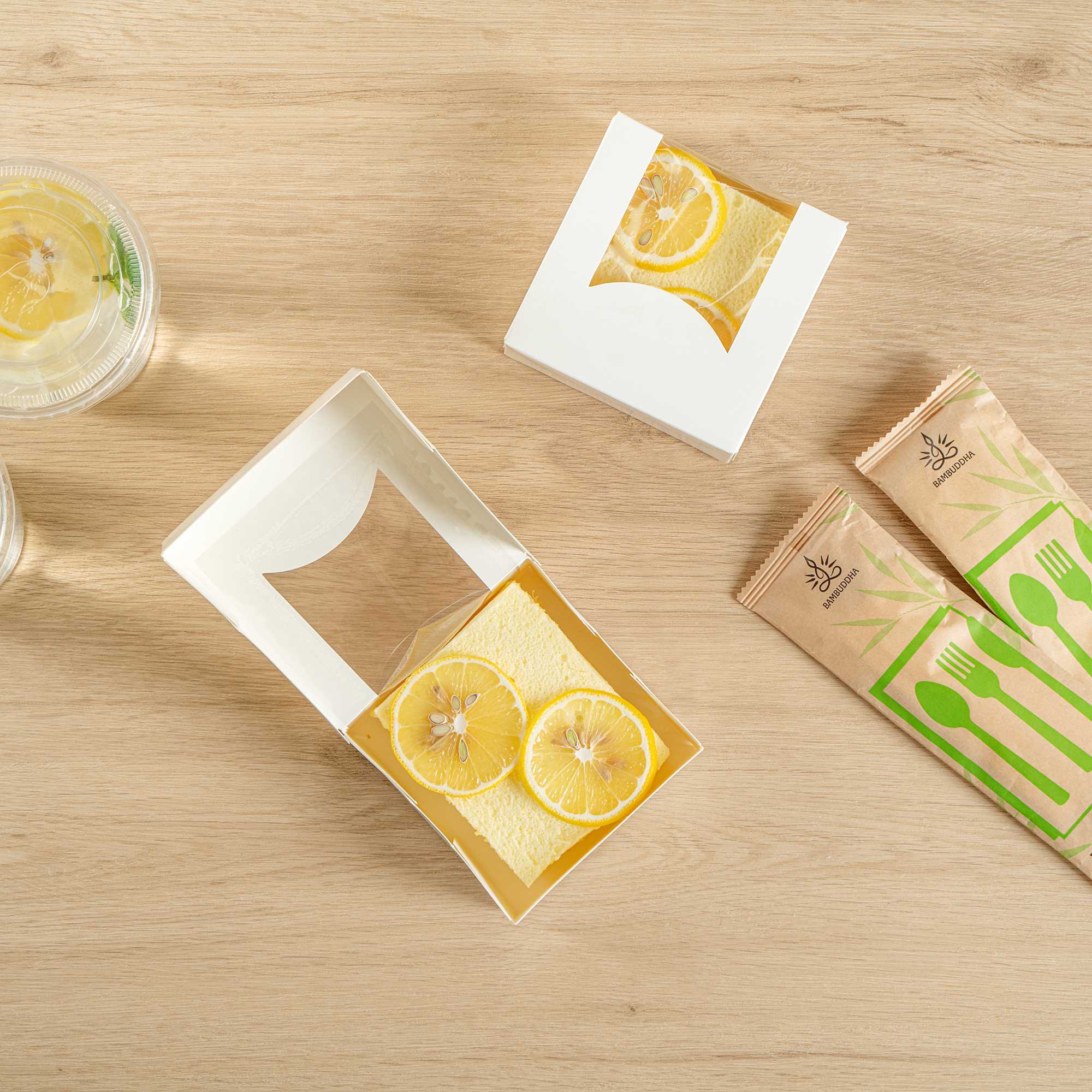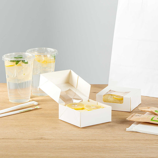 Our take out containers have built-in or detachable lids that make your desserts or special gifts instantly portable.