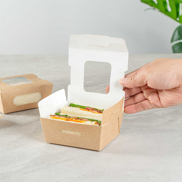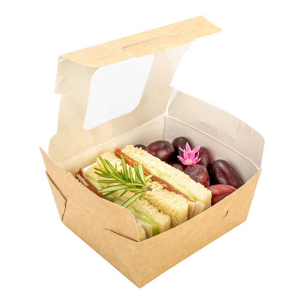 Made from sturdy paper, our disposable lunch boxes can hold the weight of cookies, wraps, or sandwiches. You won’t have to worry about food falling out!