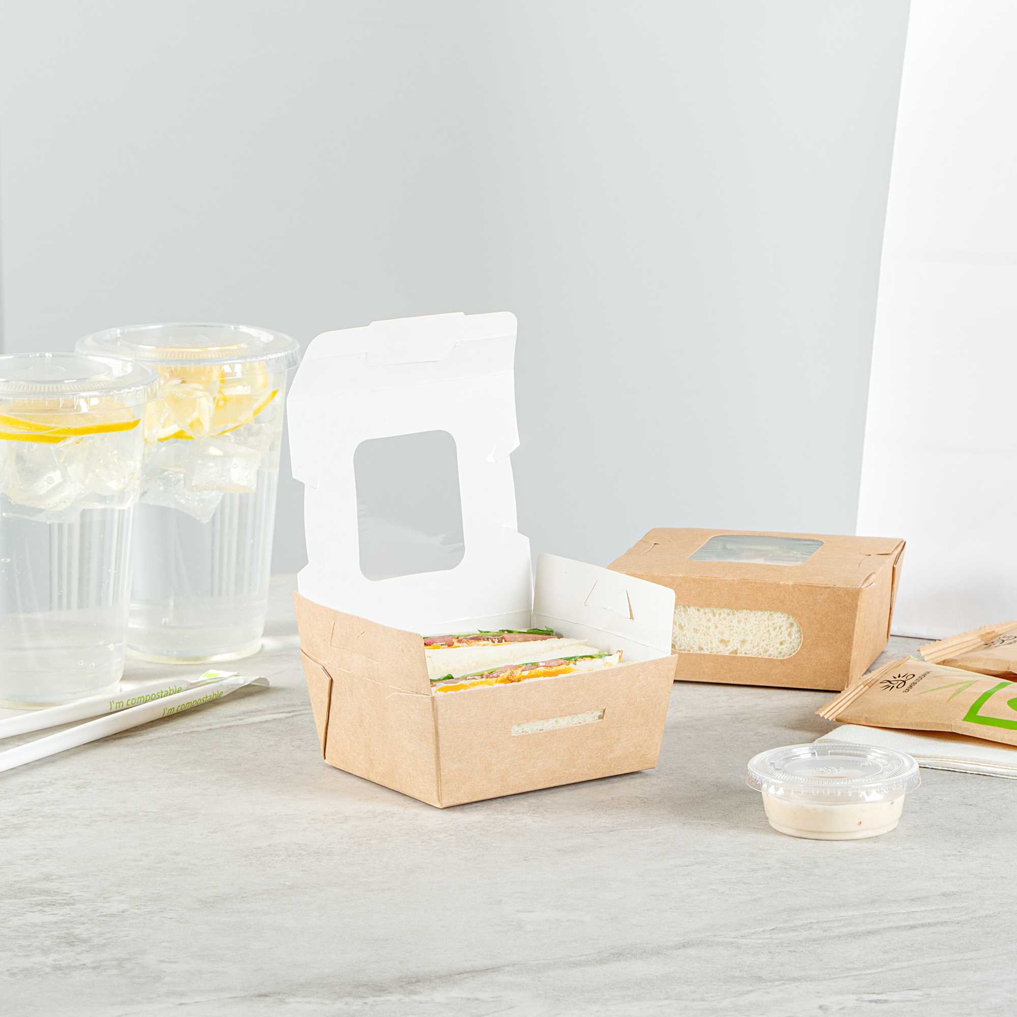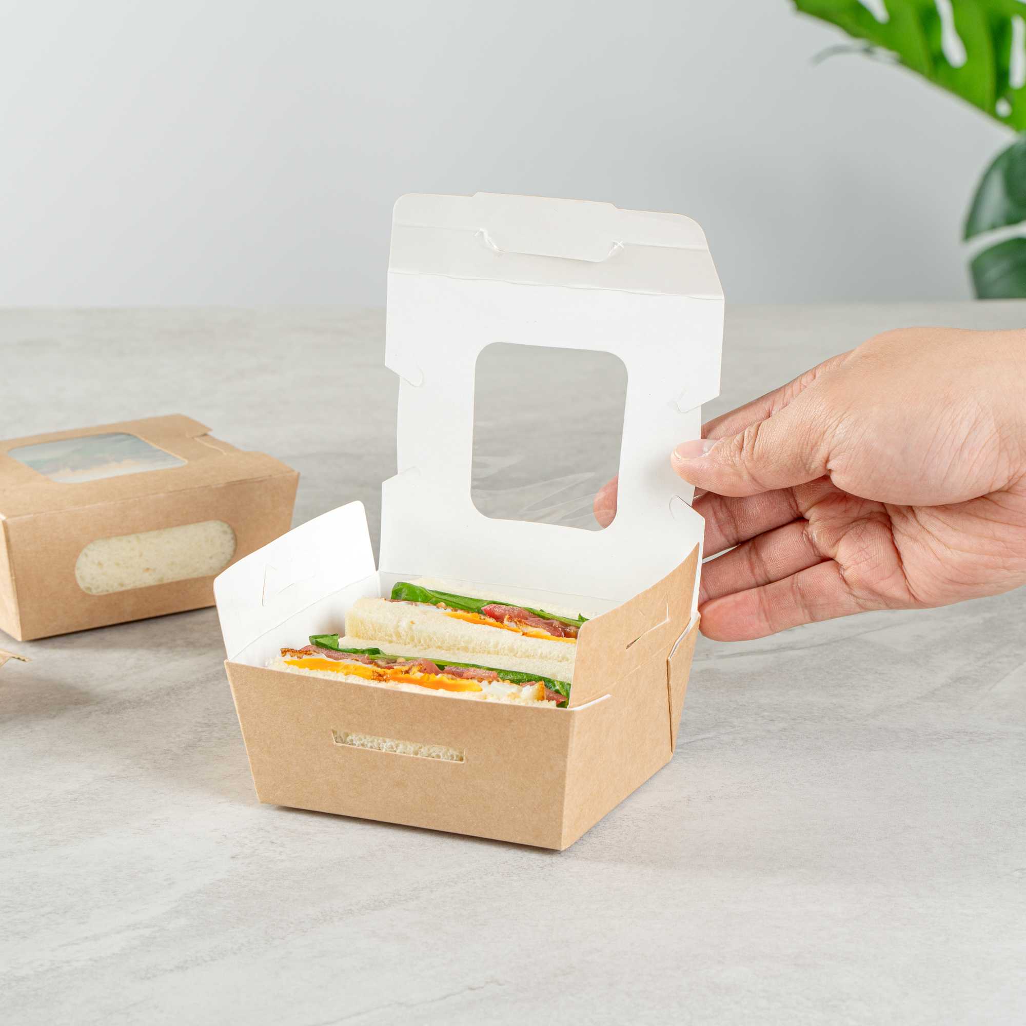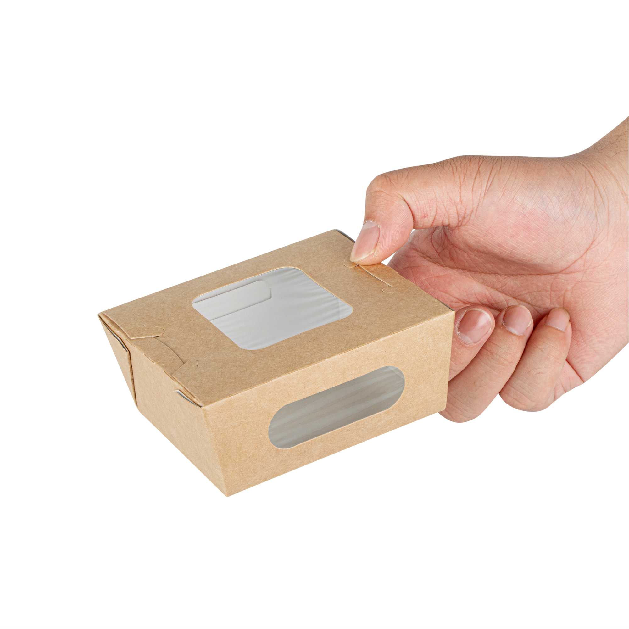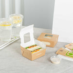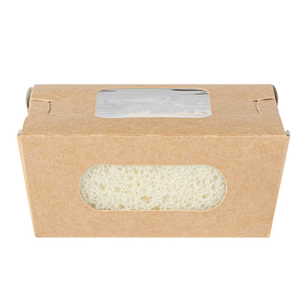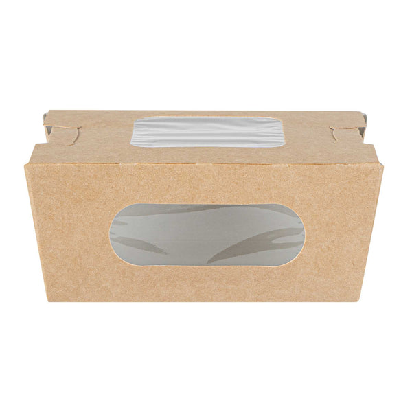 12 OZ RECTANGLE KRAFT PAPER MINI BIO TAKE OUT CONTAINER - TWO WINDOWS