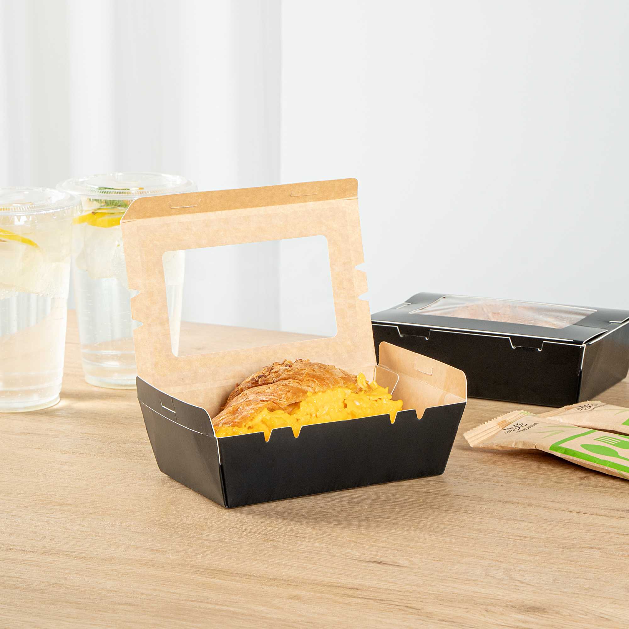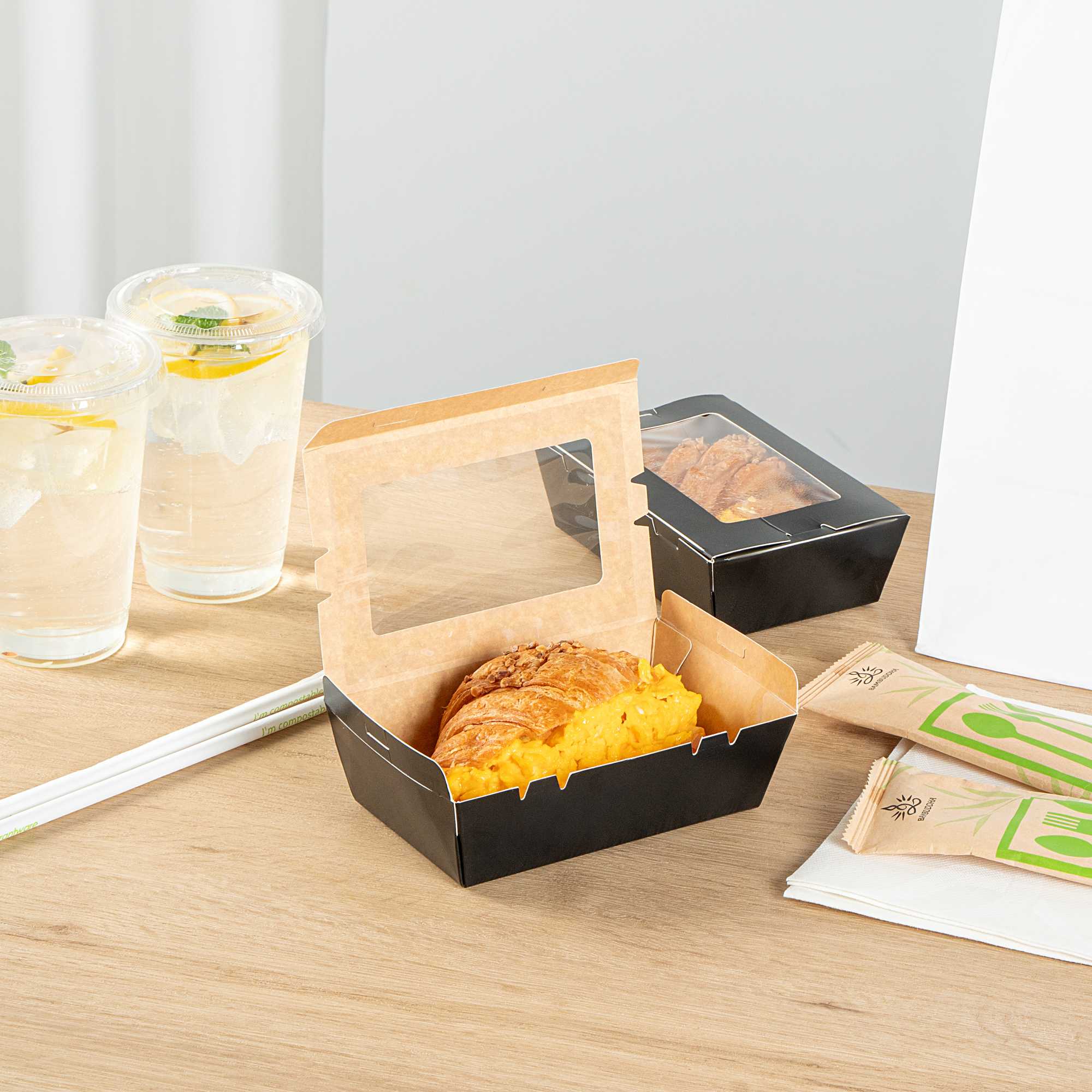 Made from sturdy paper, our disposable lunch boxes can hold the weight of cookies, wraps, or sandwiches. You won’t have to worry about food falling out!