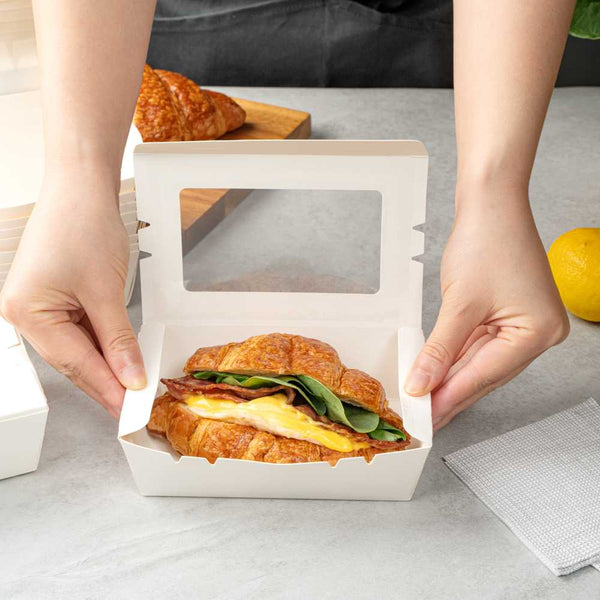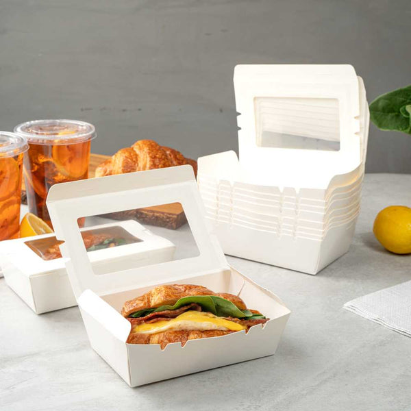 Made from sturdy paper, our disposable lunch boxes can hold the weight of cookies, wraps, or sandwiches. You won’t have to worry about food falling out!