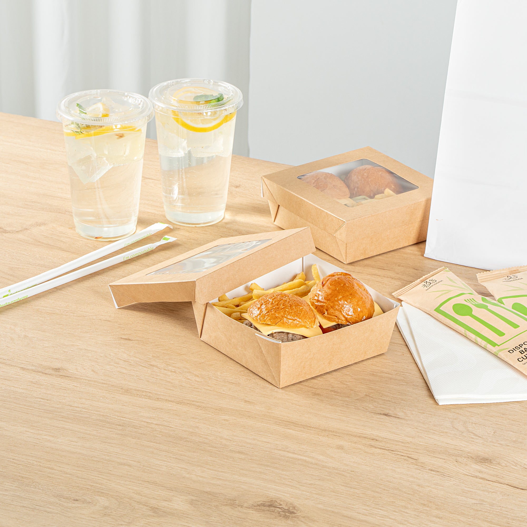 Made from sturdy paper, our disposable lunch boxes can hold the weight of cookies, wraps, or sandwiches. You won’t have to worry about food falling out!
