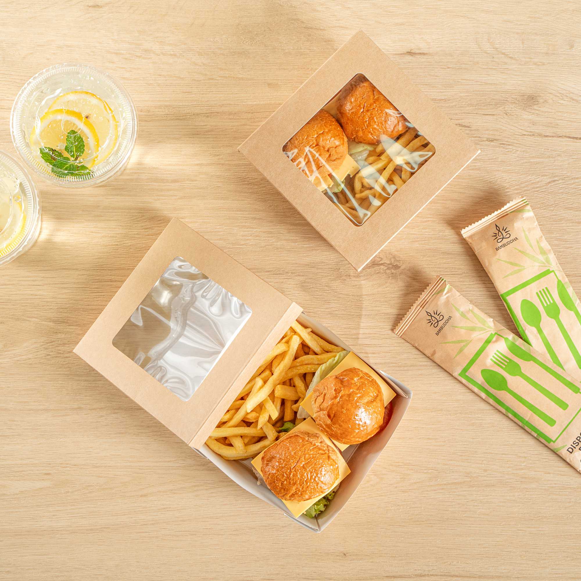 Made from sturdy paper, our disposable lunch boxes can hold the weight of cookies, wraps, or sandwiches. You won’t have to worry about food falling out!