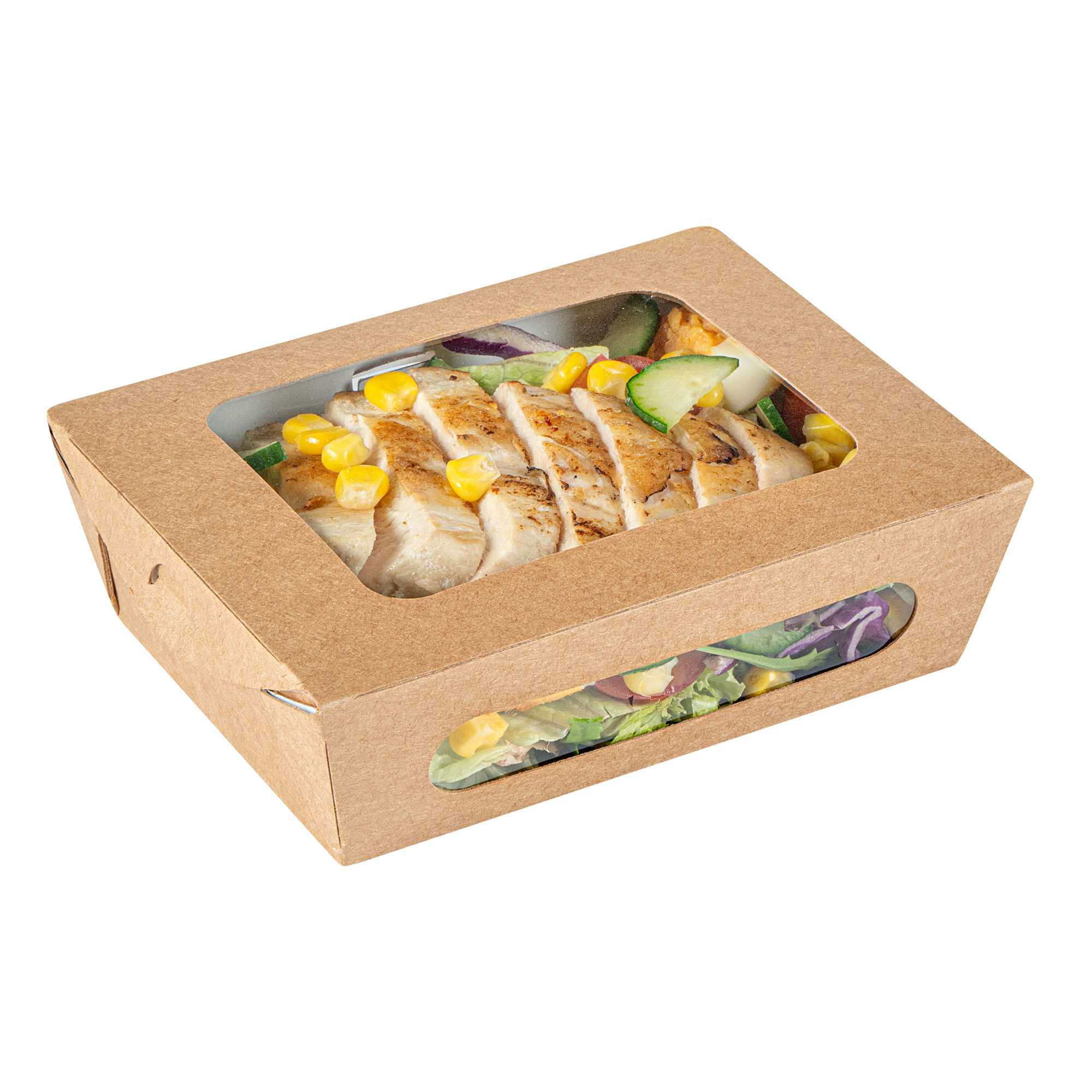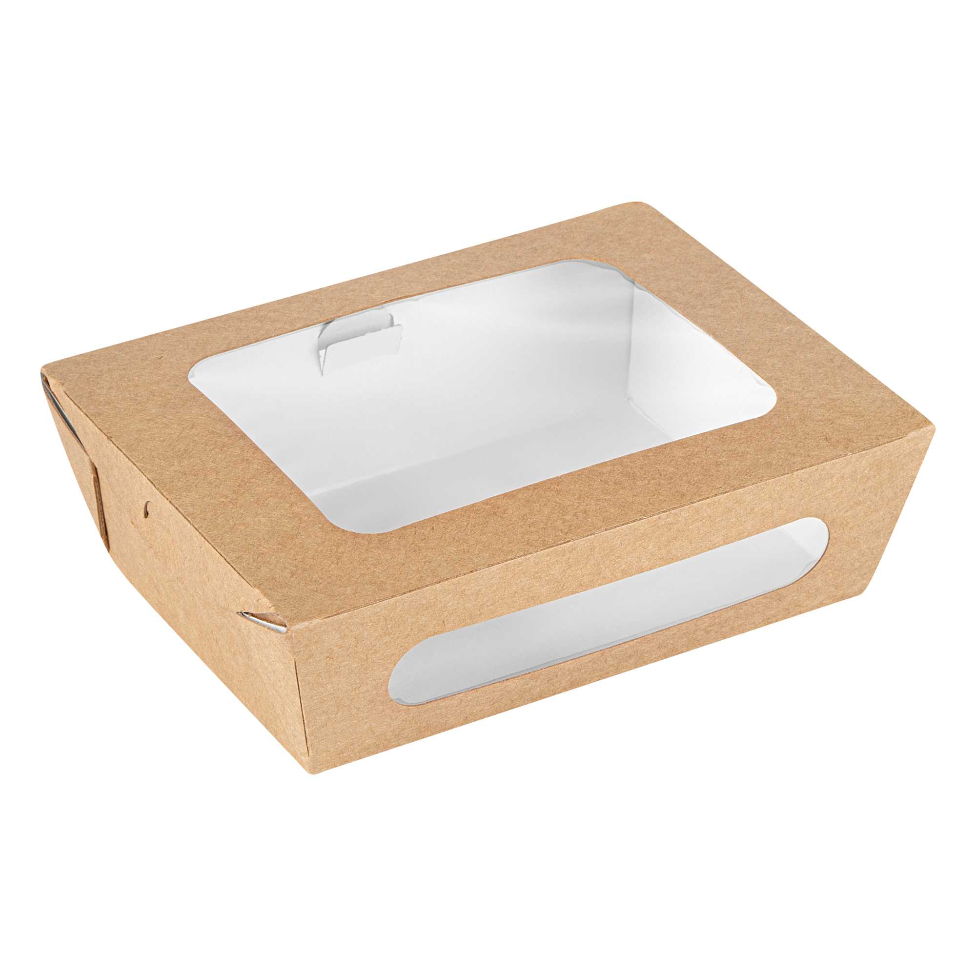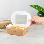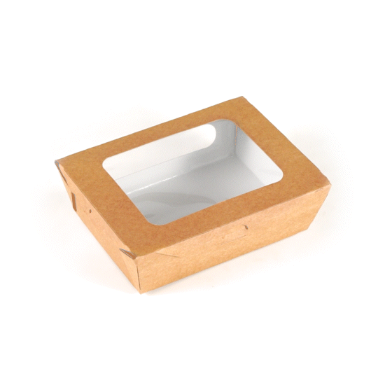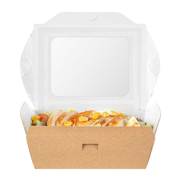 28 OZ RECTANGLE KRAFT PAPER SMALL BIO TAKE OUT CONTAINER - TWO WINDOWS