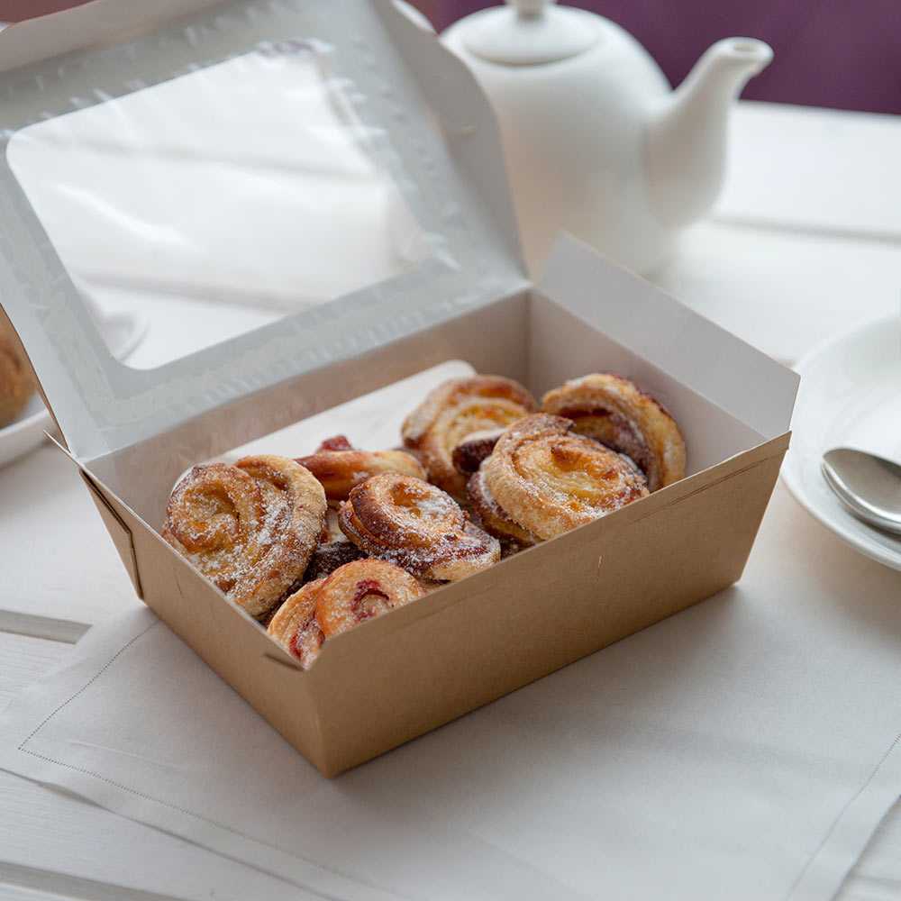 Our take out containers have built-in or detachable lids that make your desserts or special gifts instantly portable.
