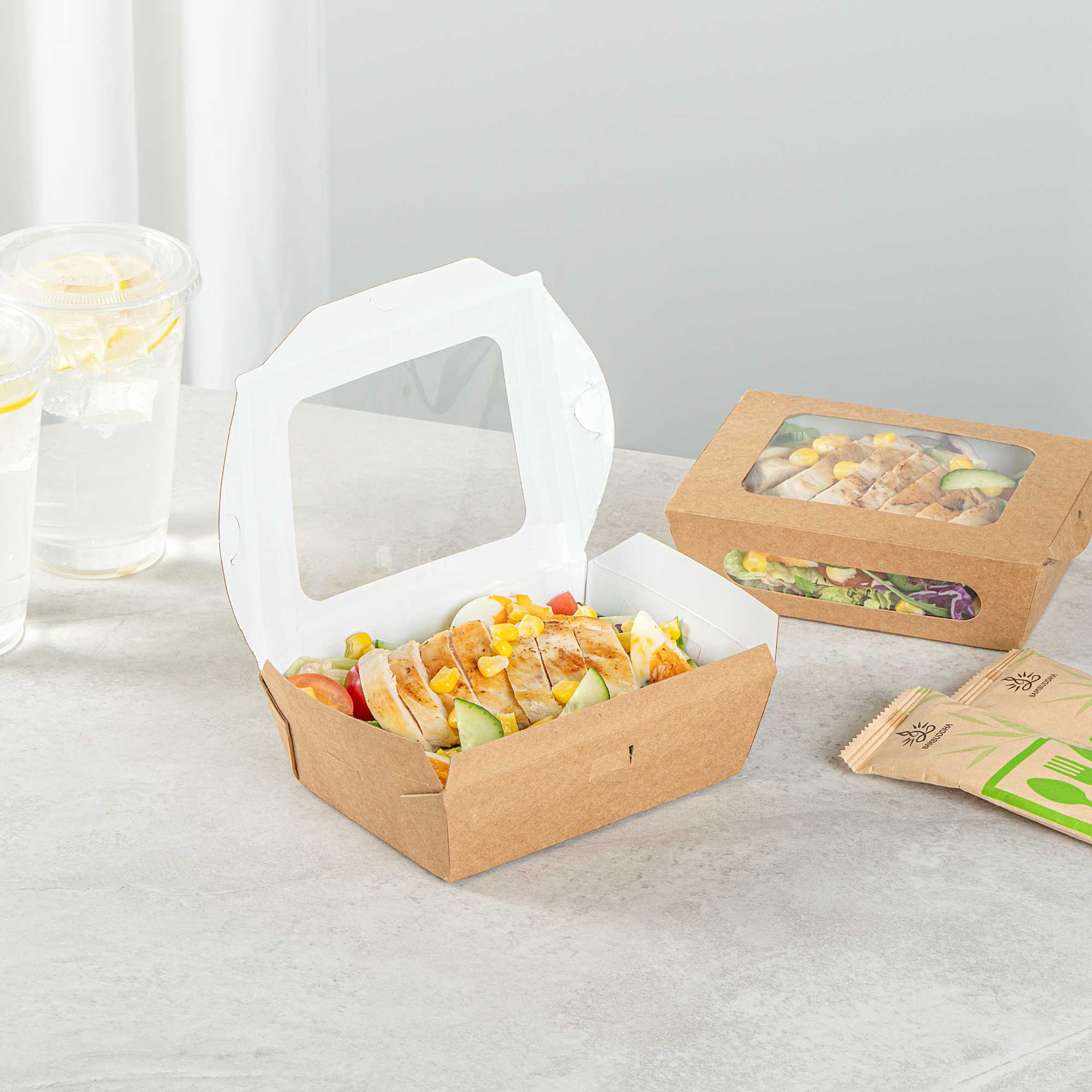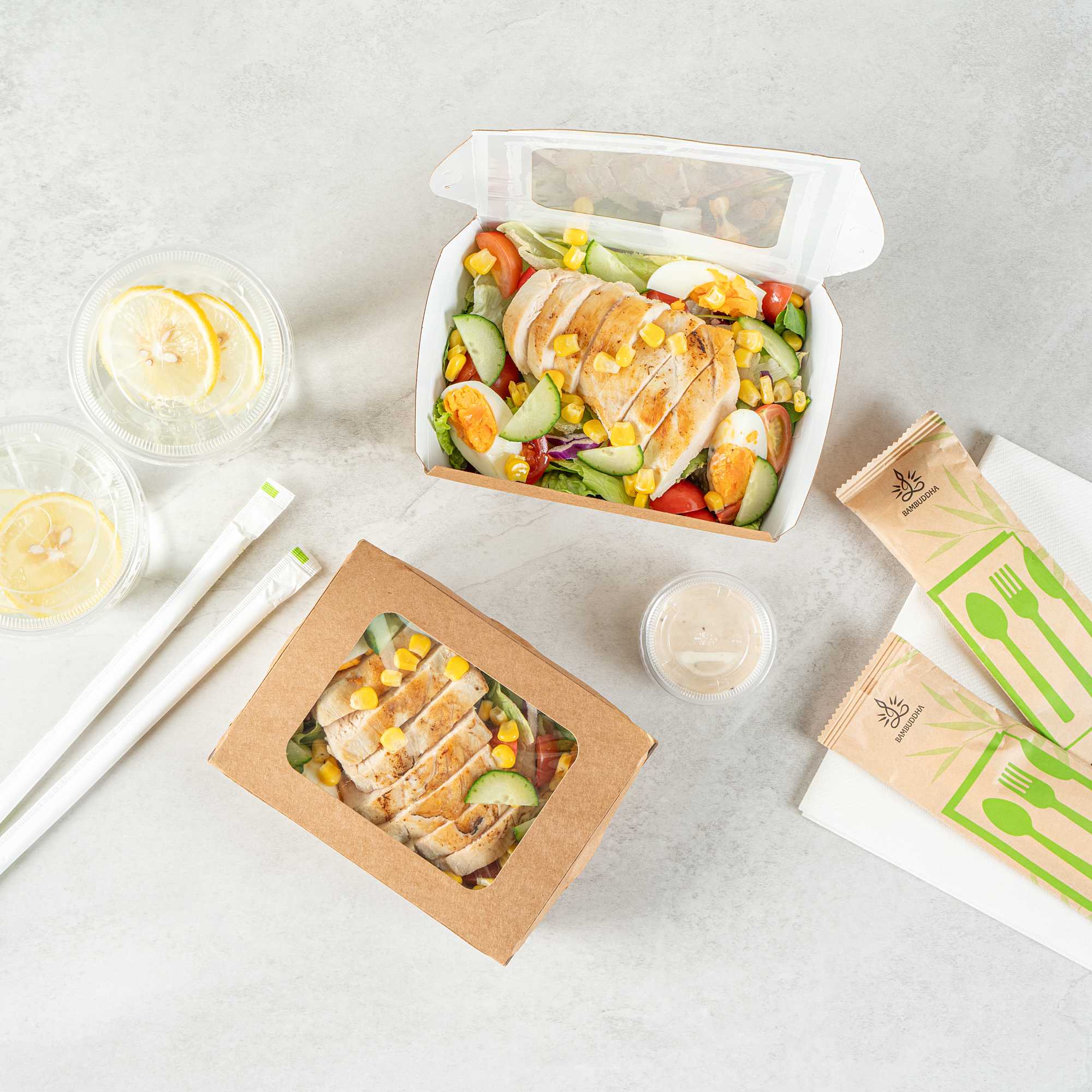 - Durable kraft paper ensures that food remains secure and undamaged during delivery
