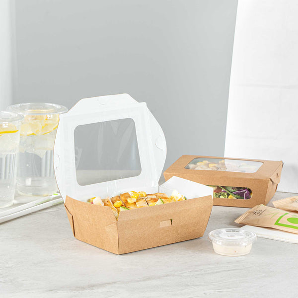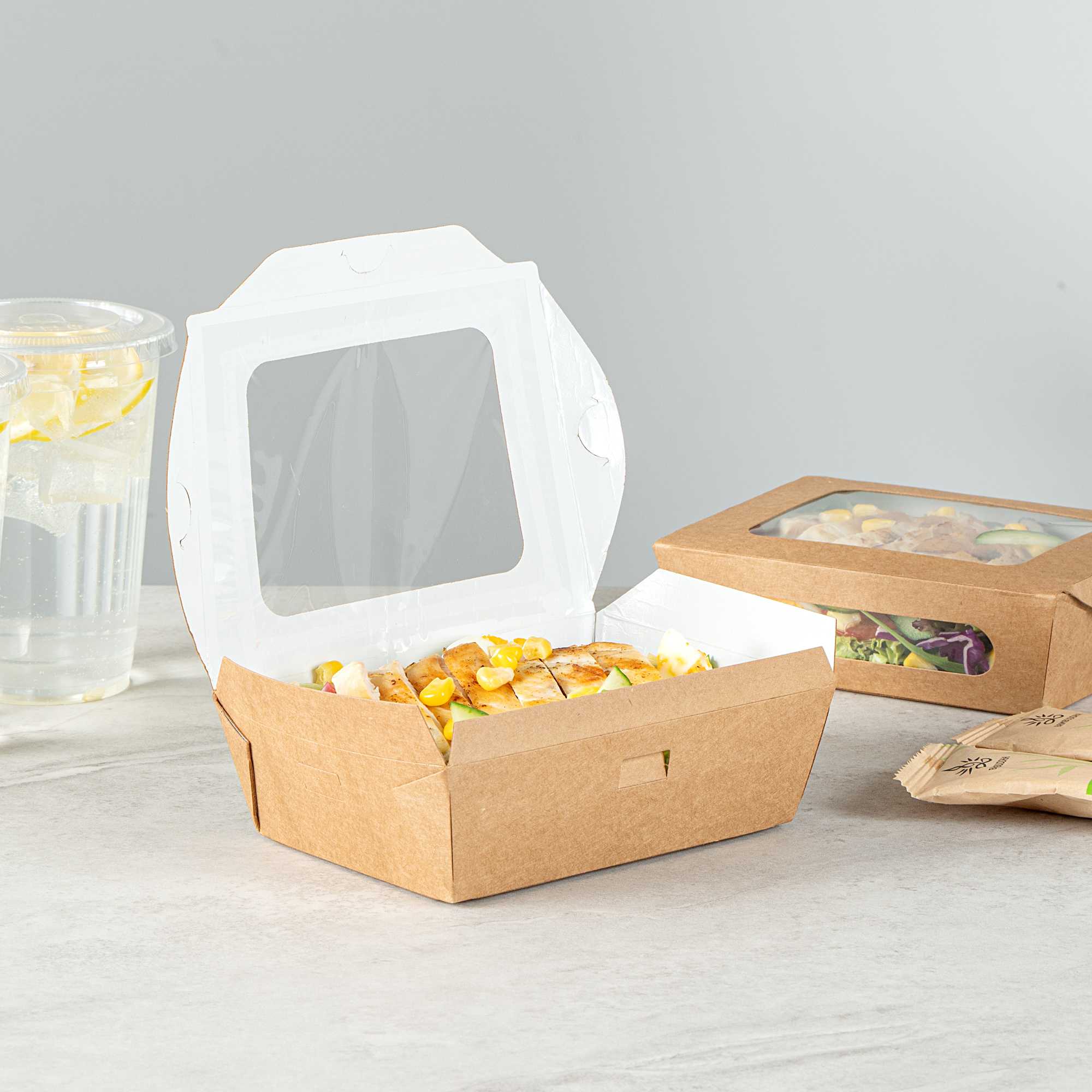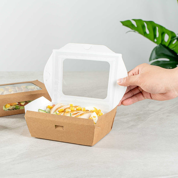 Made from sturdy paper, our disposable lunch boxes can hold the weight of cookies, wraps, or sandwiches. You won’t have to worry about food falling out!