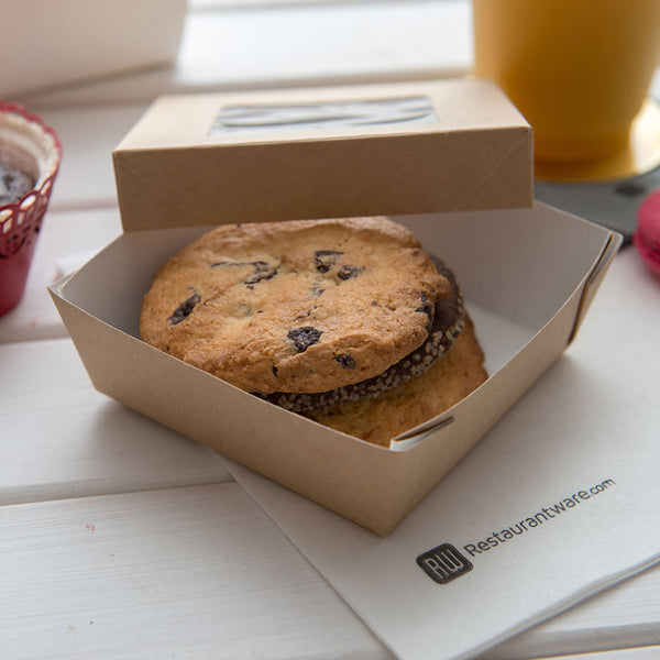 Made from sturdy paper, our disposable lunch boxes can hold the weight of cookies, wraps, or sandwiches. You won’t have to worry about food falling out!