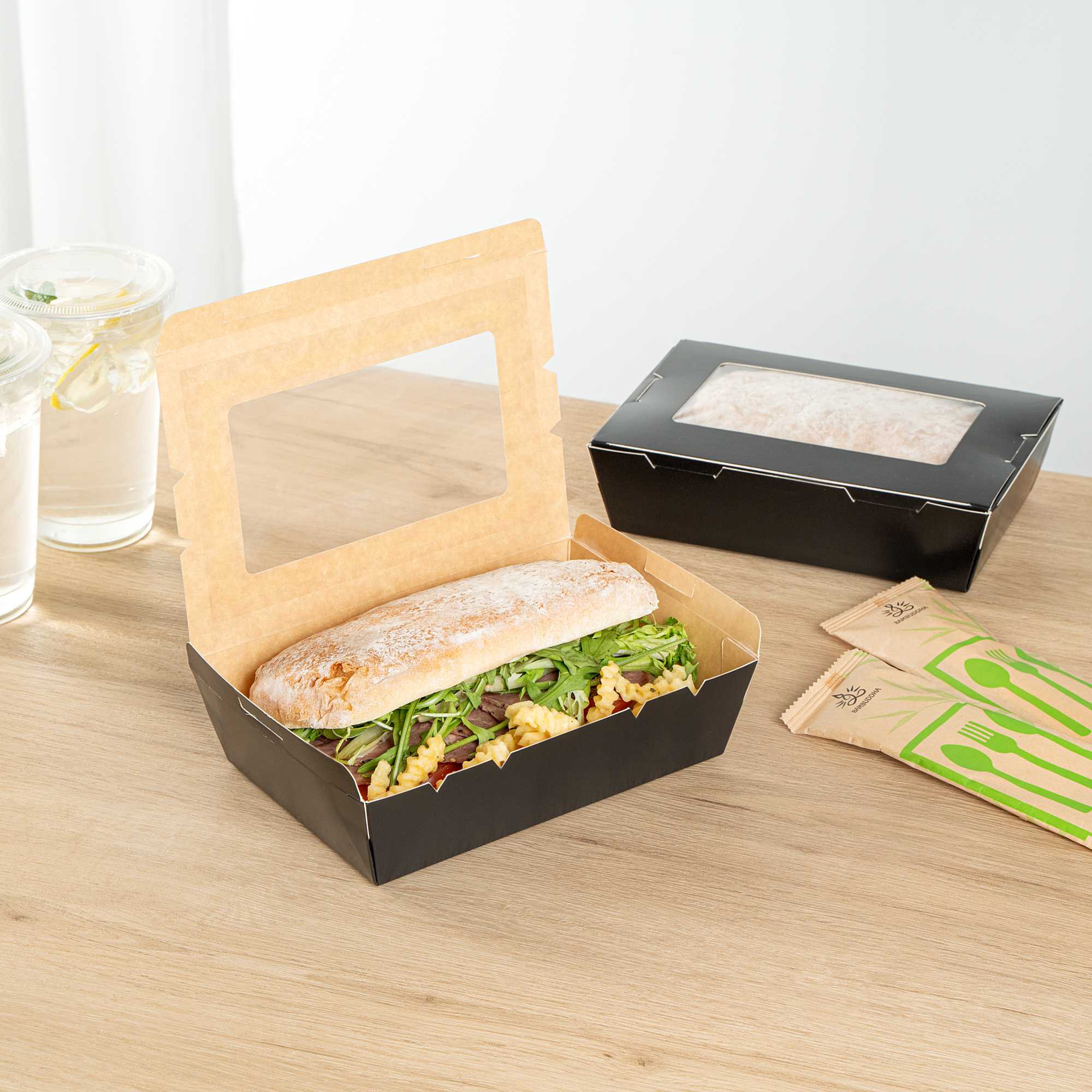 Made from sturdy paper, our disposable lunch boxes can hold the weight of cookies, wraps, or sandwiches. You won’t have to worry about food falling out!