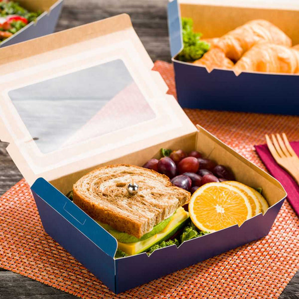 Made from sturdy paper, our disposable lunch boxes can hold the weight of cookies, wraps, or sandwiches. You won’t have to worry about food falling out!