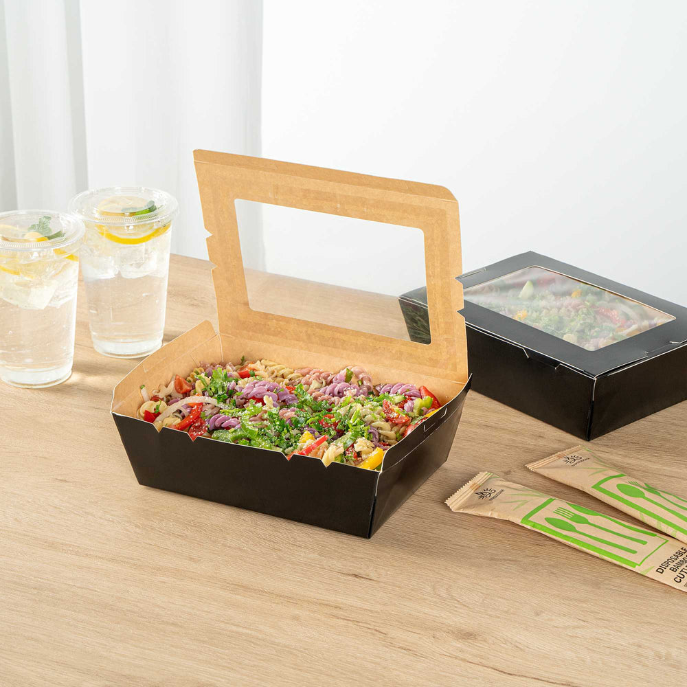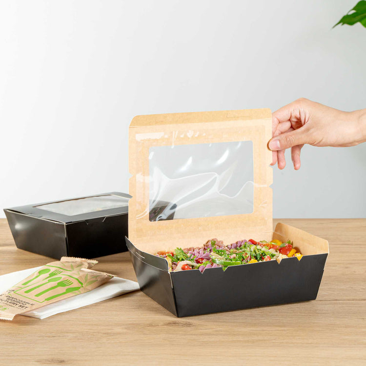 Made from sturdy paper, our disposable lunch boxes can hold the weight of cookies, wraps, or sandwiches. You won’t have to worry about food falling out!