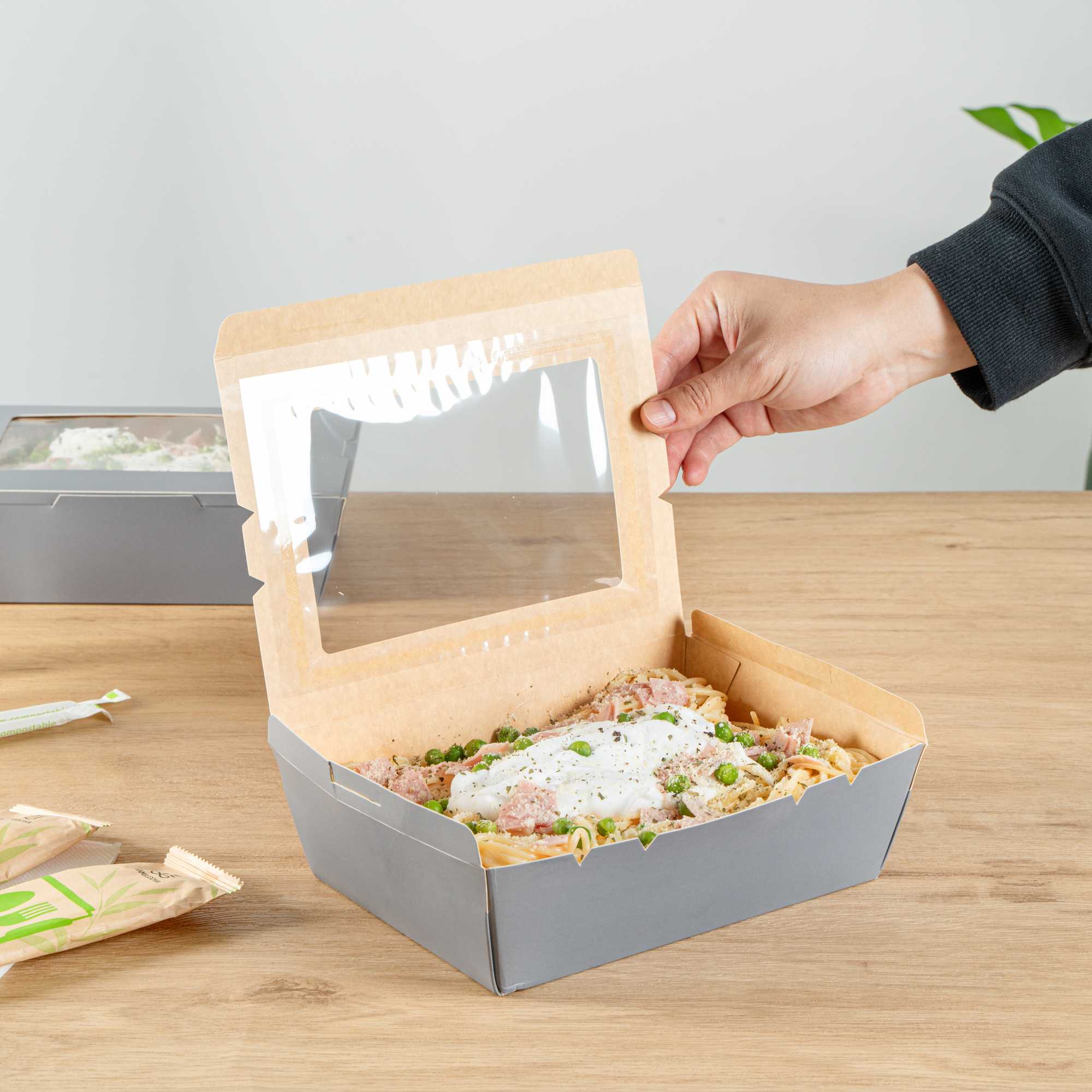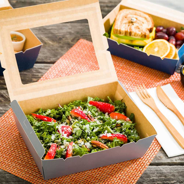 Made from sturdy paper, our disposable lunch boxes can hold the weight of cookies, wraps, or sandwiches. You won’t have to worry about food falling out!