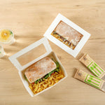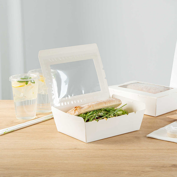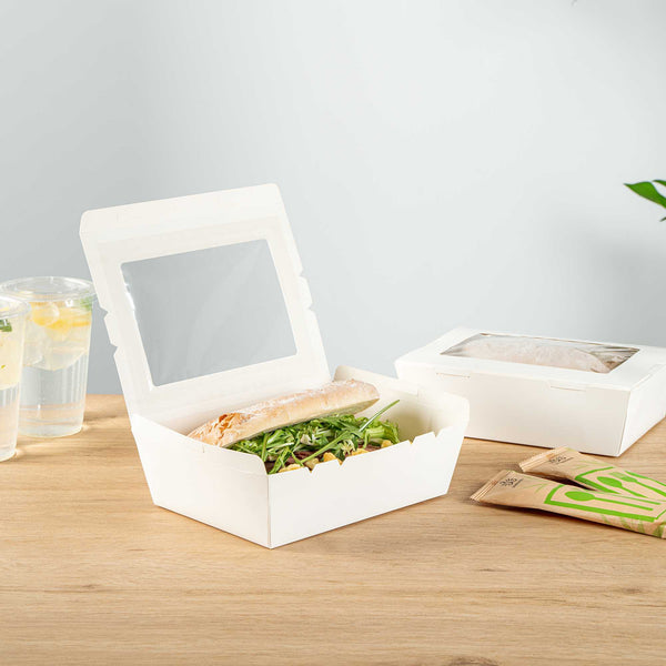 Made from sturdy paper, our disposable lunch boxes can hold the weight of cookies, wraps, or sandwiches. You won’t have to worry about food falling out!