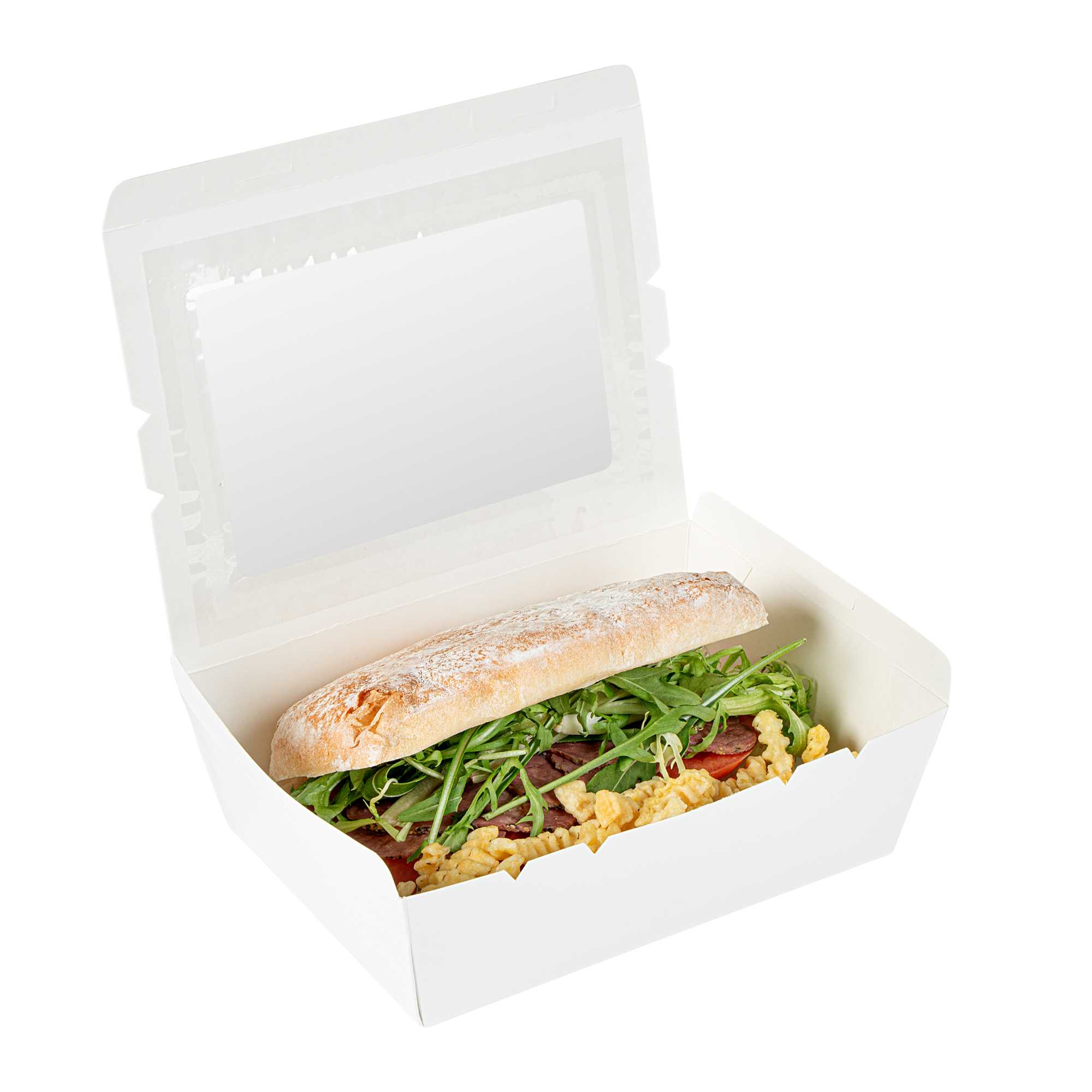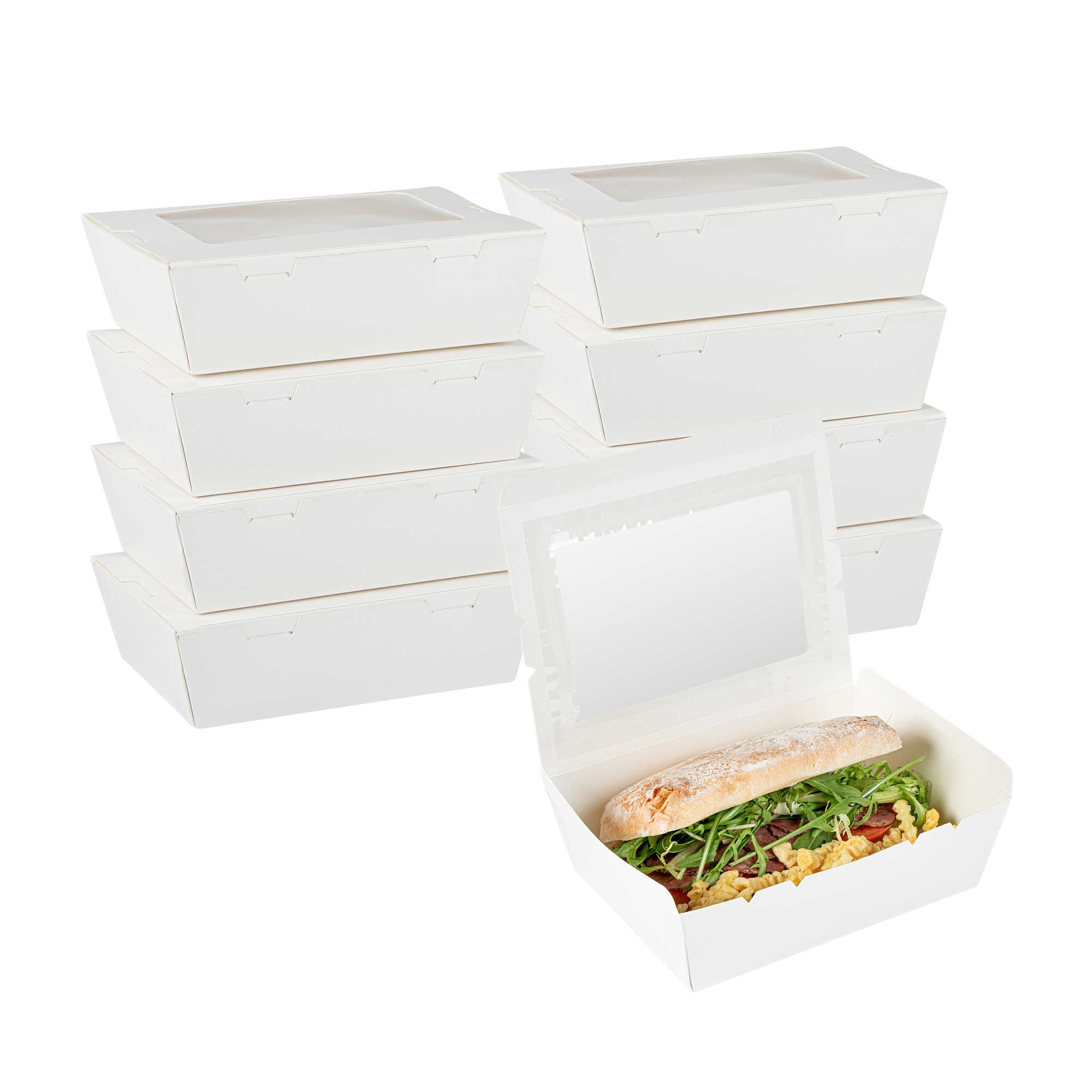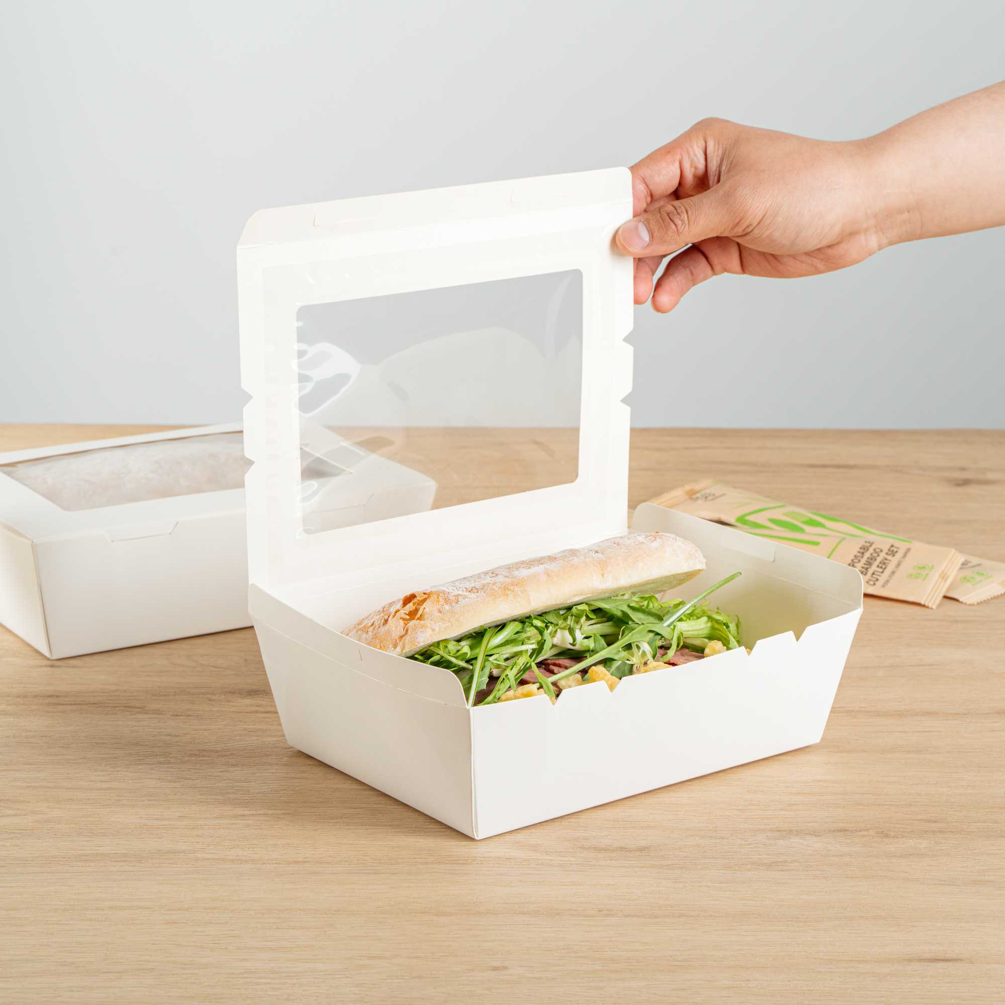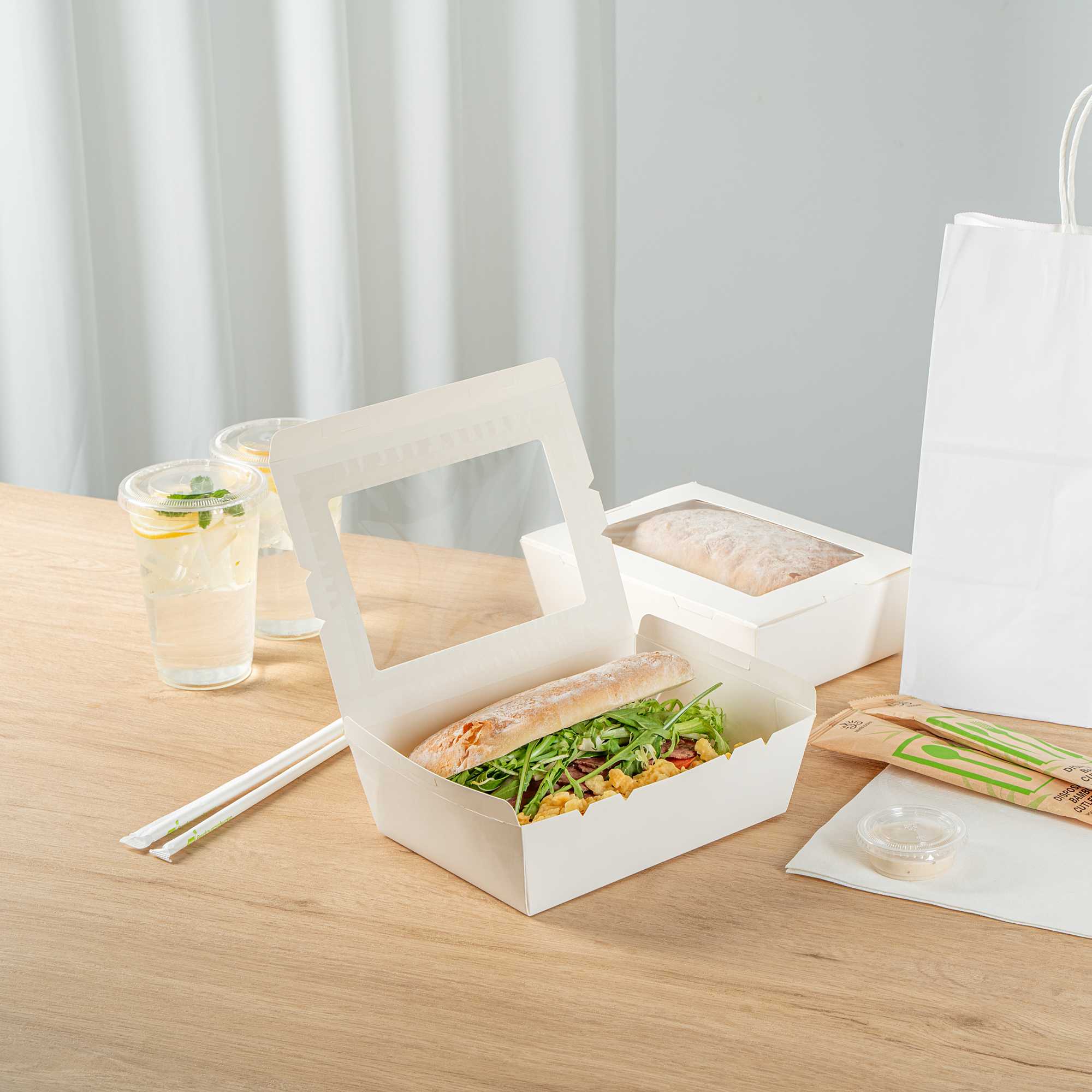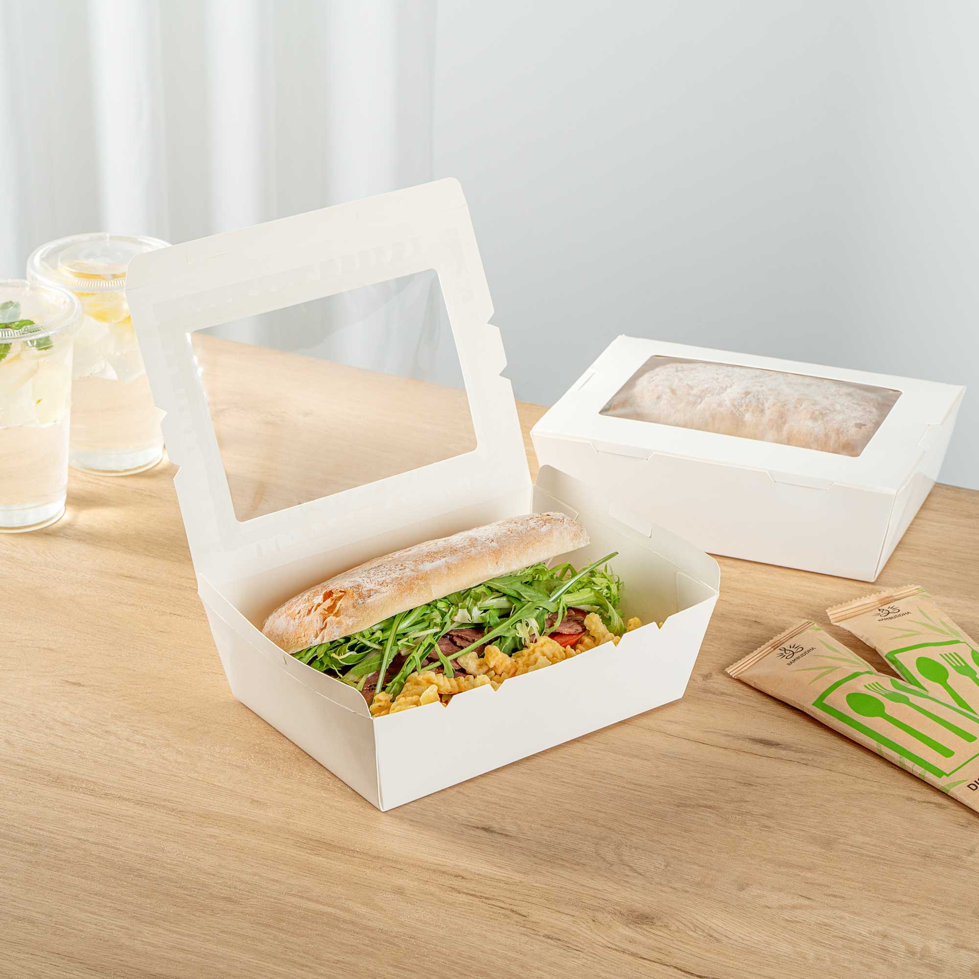 Made from sturdy paper, our disposable lunch boxes can hold the weight of cookies, wraps, or sandwiches. You won’t have to worry about food falling out!